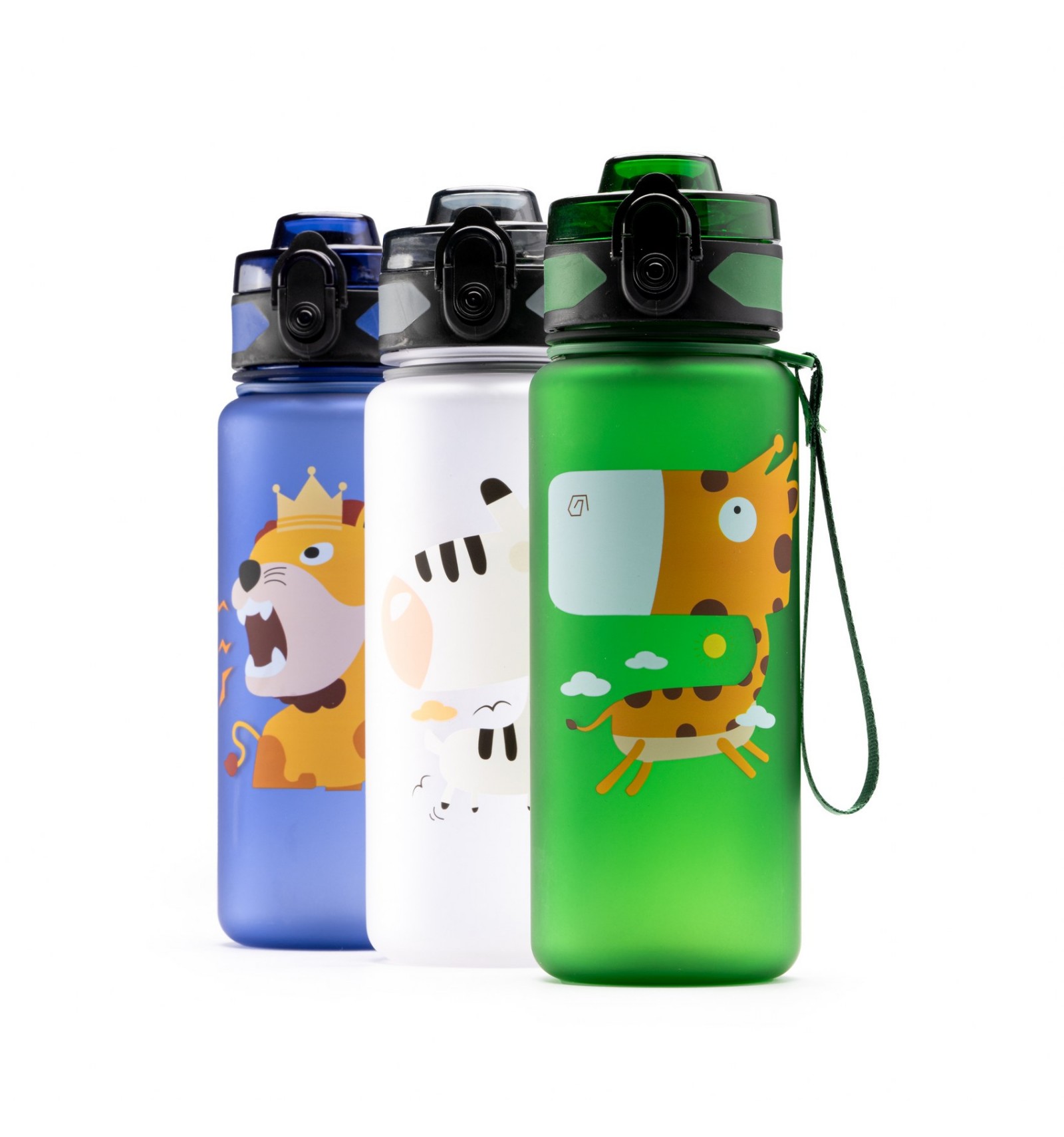 Bidonul tritan cu design prietenos pentru copii are o capacitate de 500 ml, ideal pentru copii.