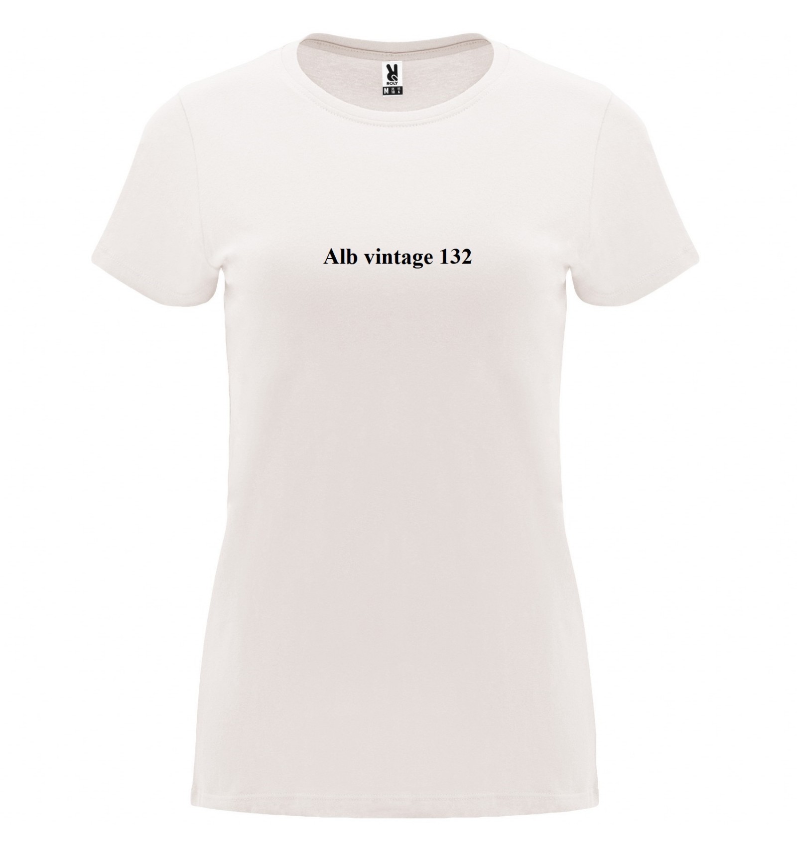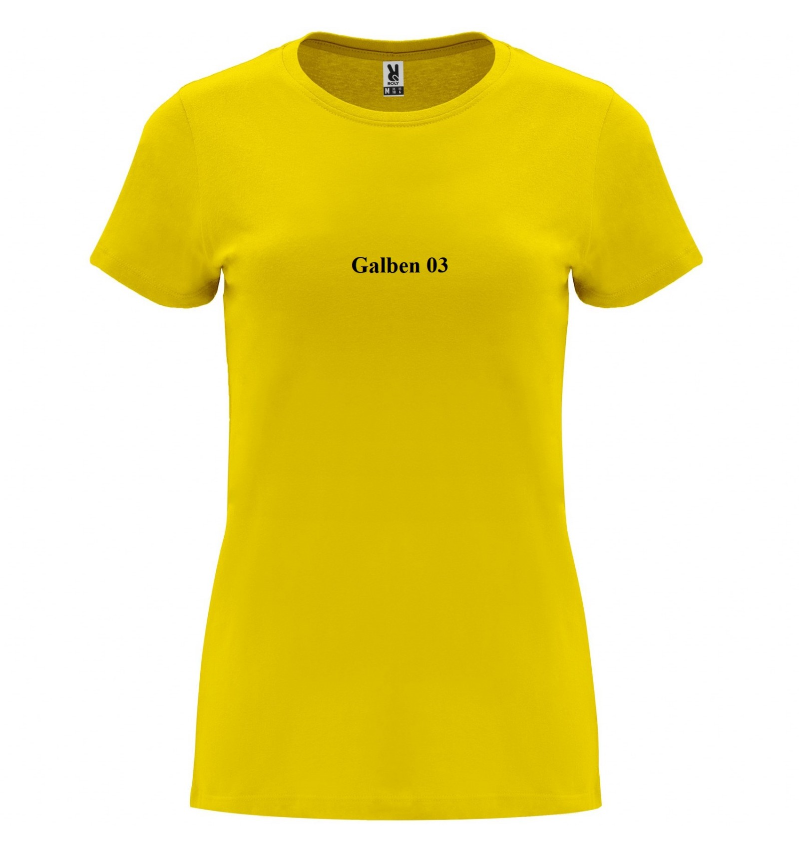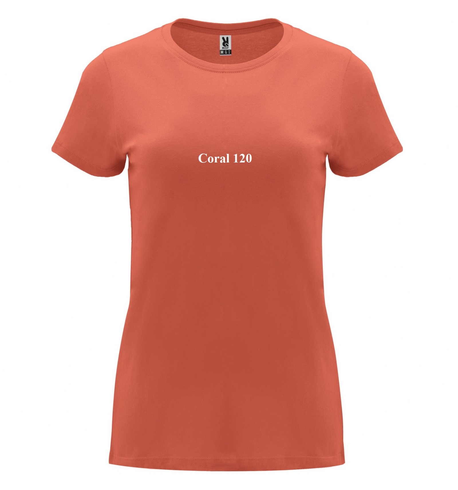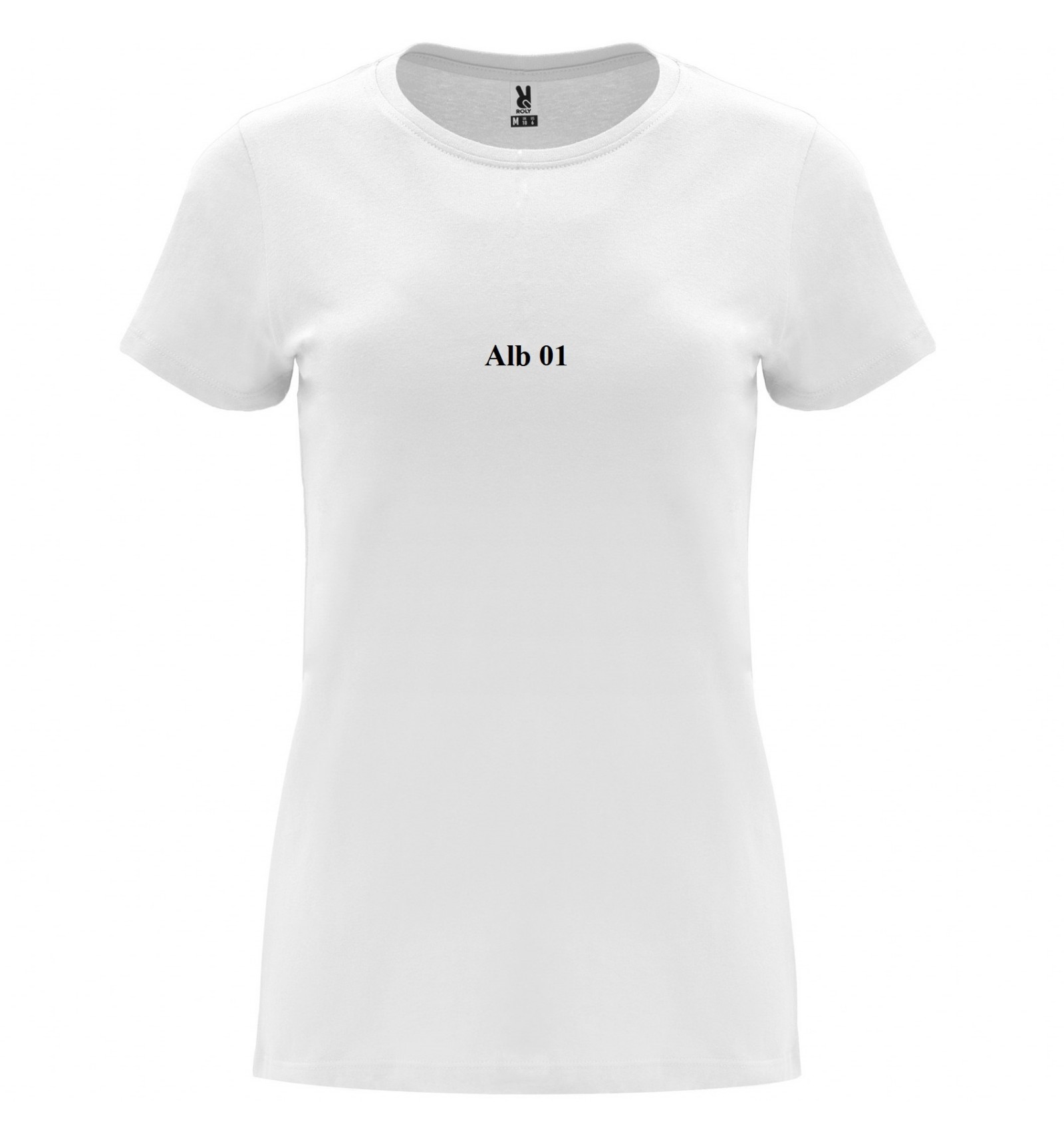 Tricou cu mânecă scurtă de damă. Guler rotund în canalé 1x1. Model cambrat. Bandă întărită pentru acoperirea cusăturilor la guler.