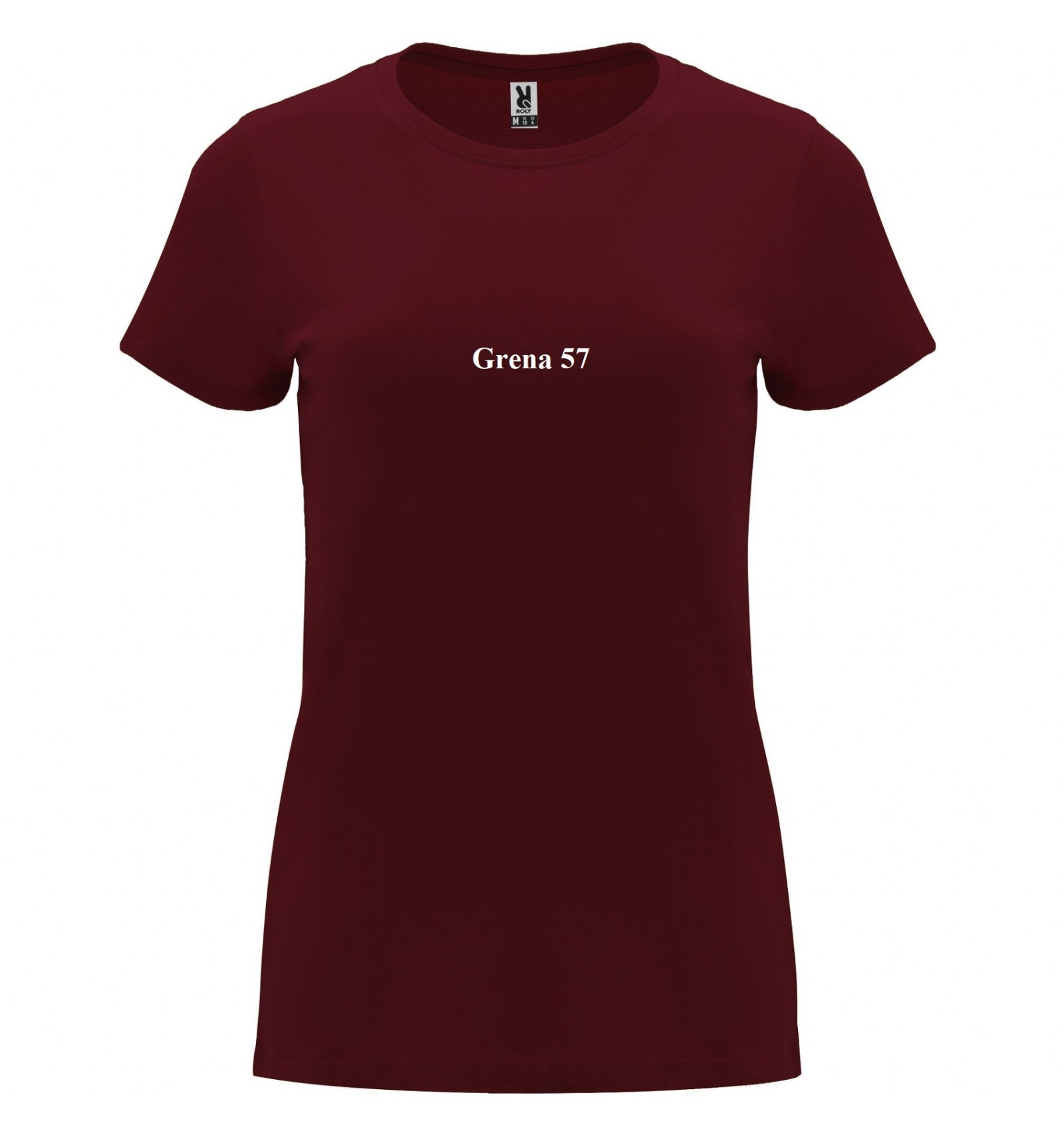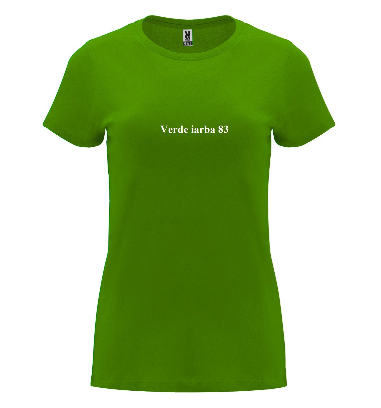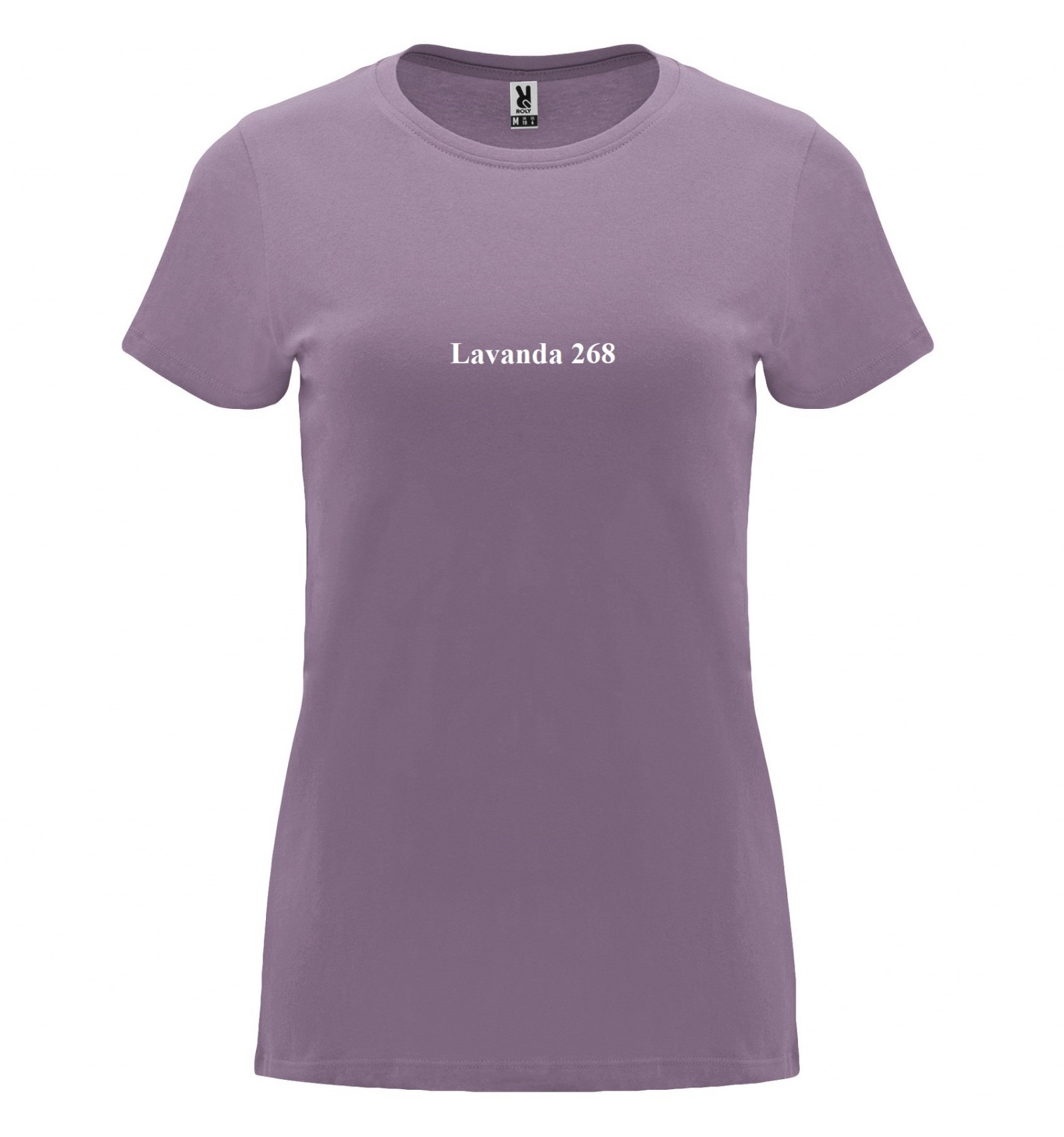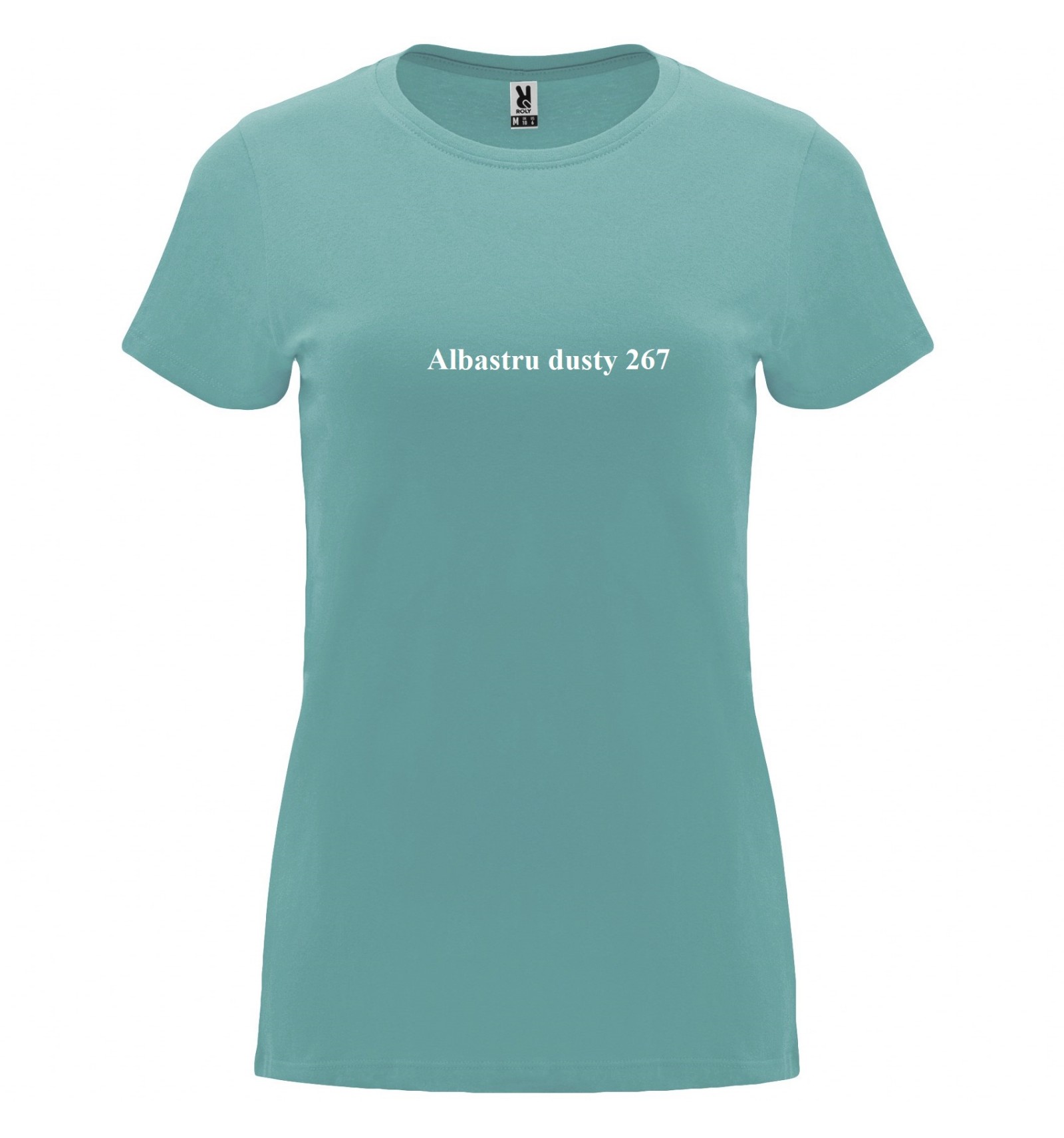 Tricou cu mânecă scurtă de damă. Guler rotund în canalé 1x1. Model cambrat. Bandă întărită pentru acoperirea cusăturilor la guler.