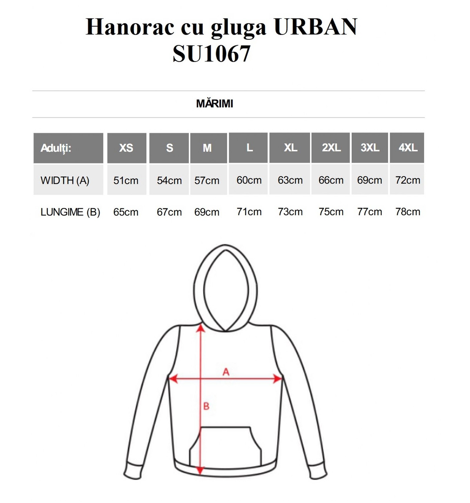 Adulți: XS, S, M, L, XL, XXL, 3XL, 4XL