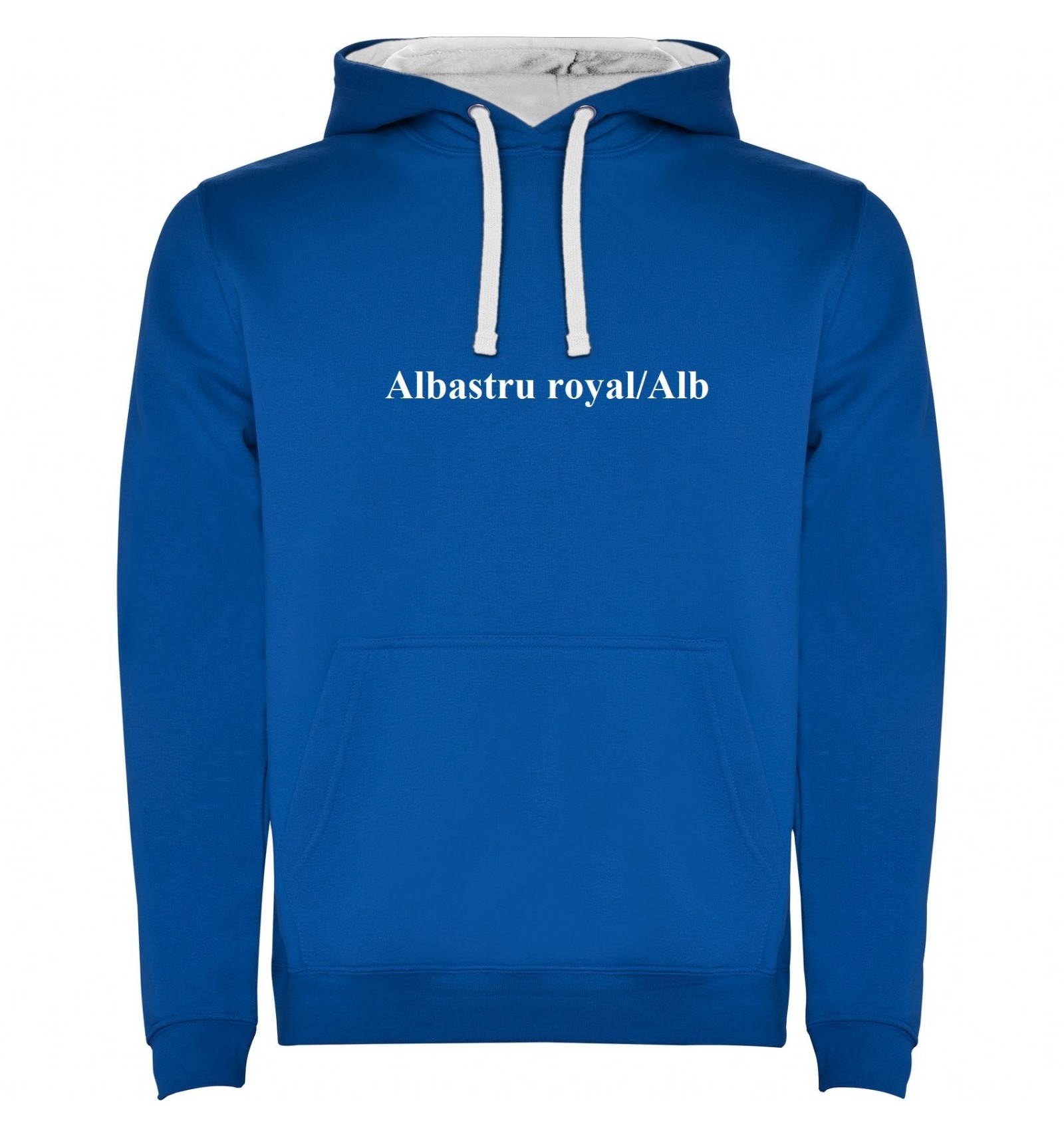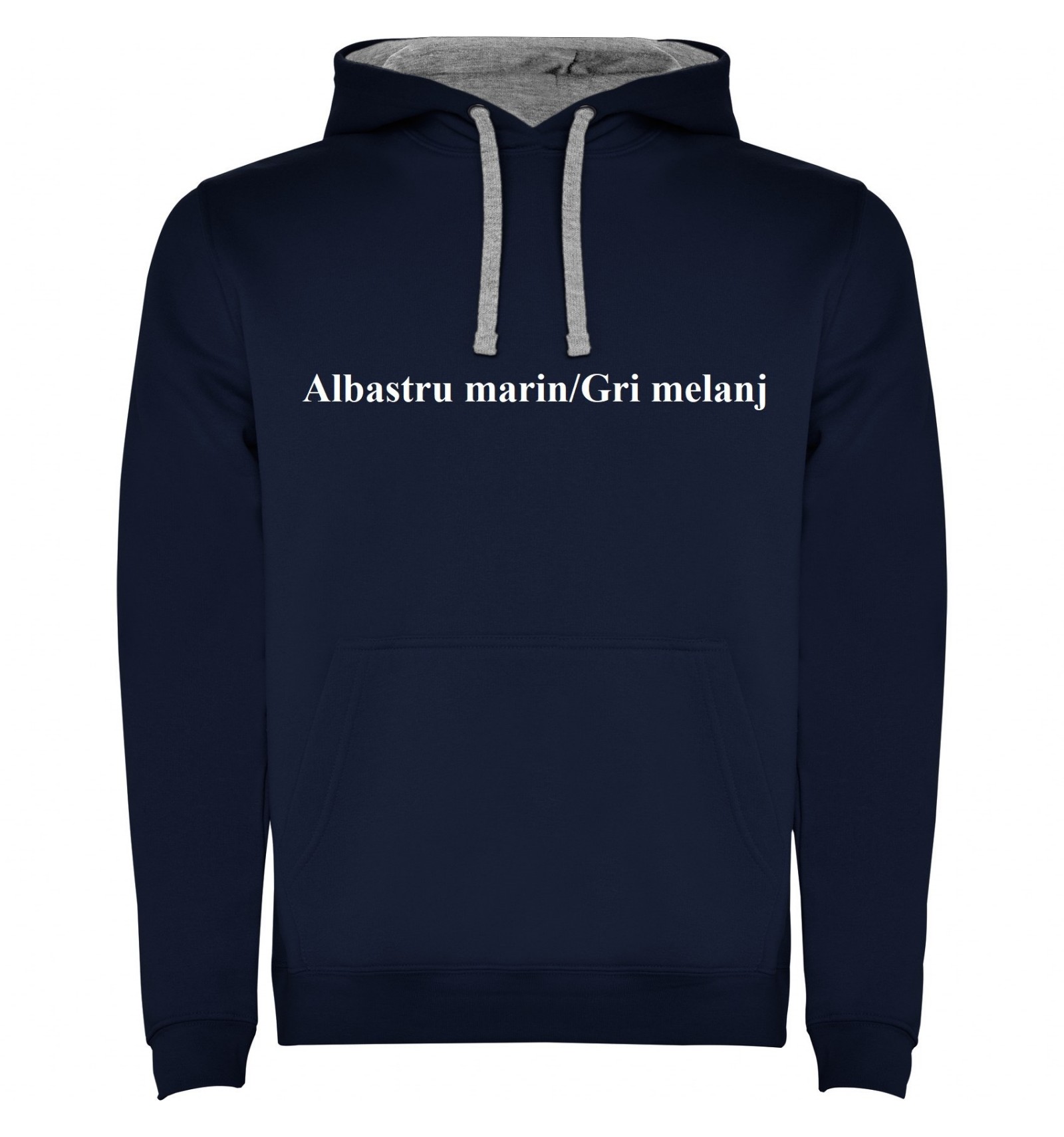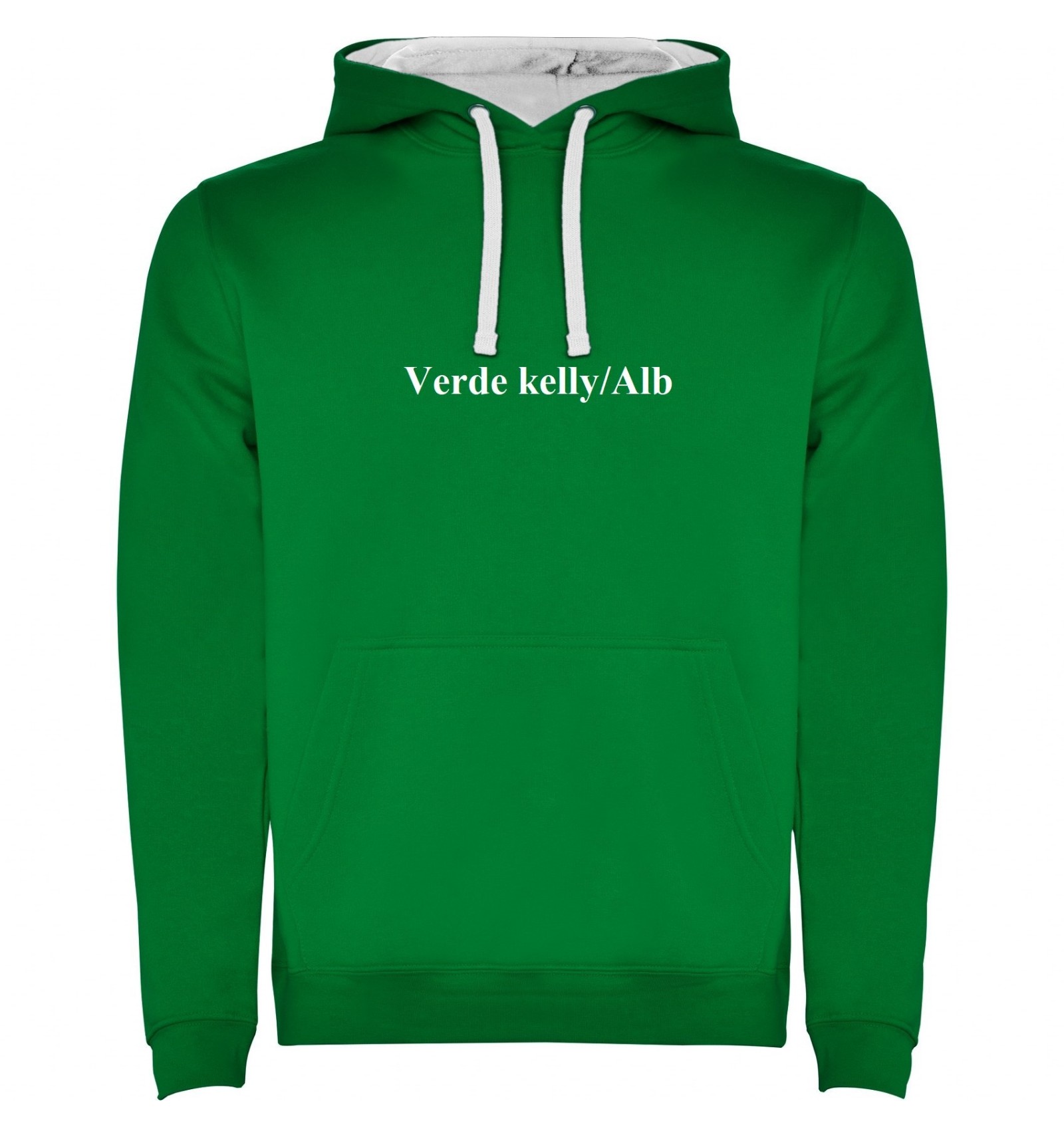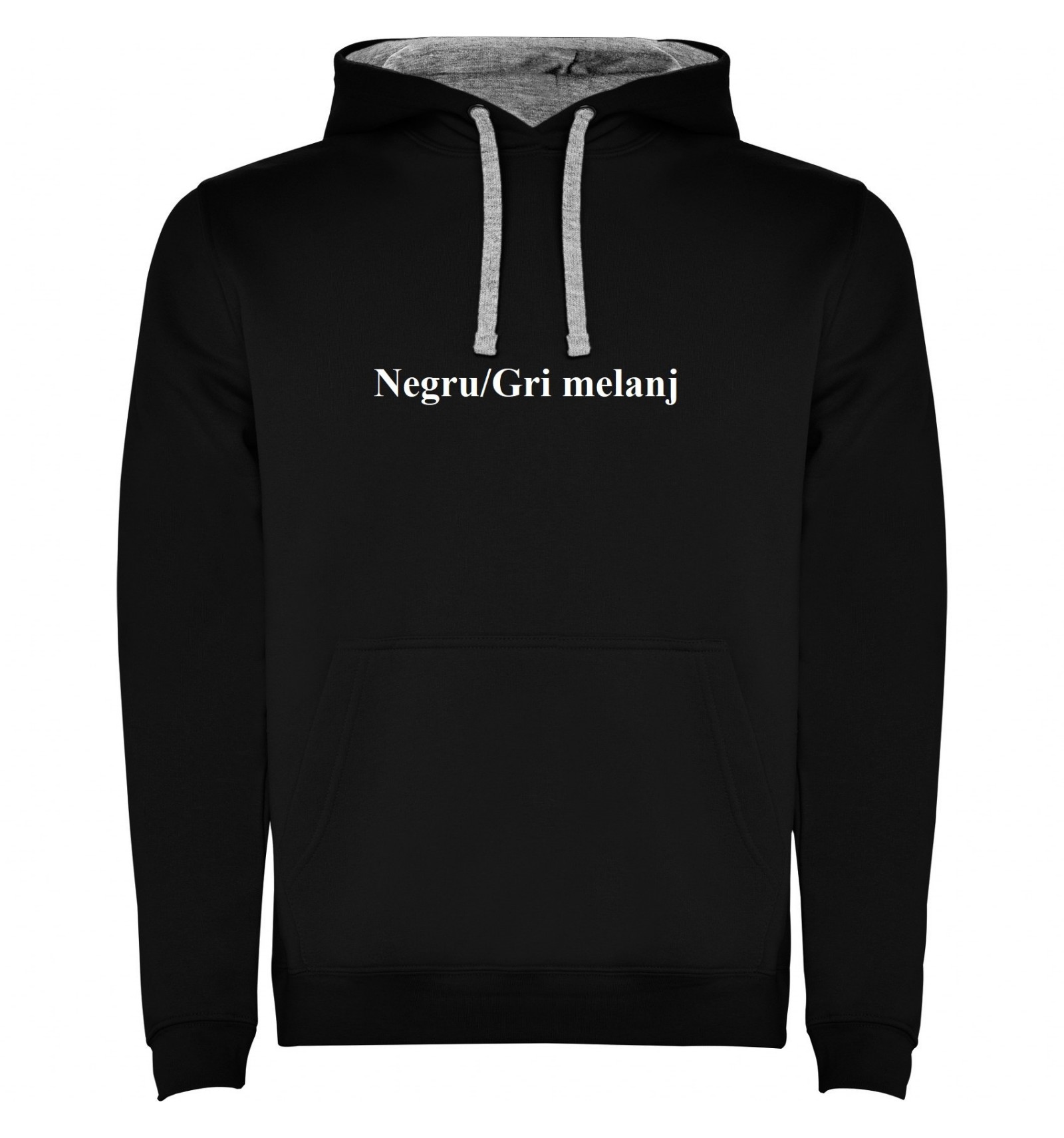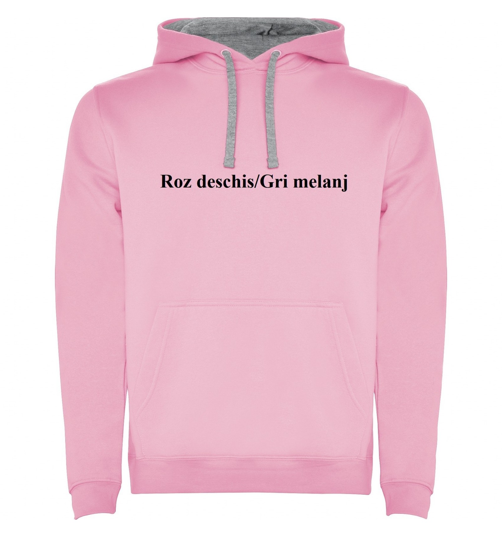 Hanorac cu glugă bicoloră din material dublu și buzunar tip marsupiu, cusături acoperite atât la buzunat cât și la guler. Talie și manșete canelate 1x1 cu elastan. Modelul de copii este fără șnur.