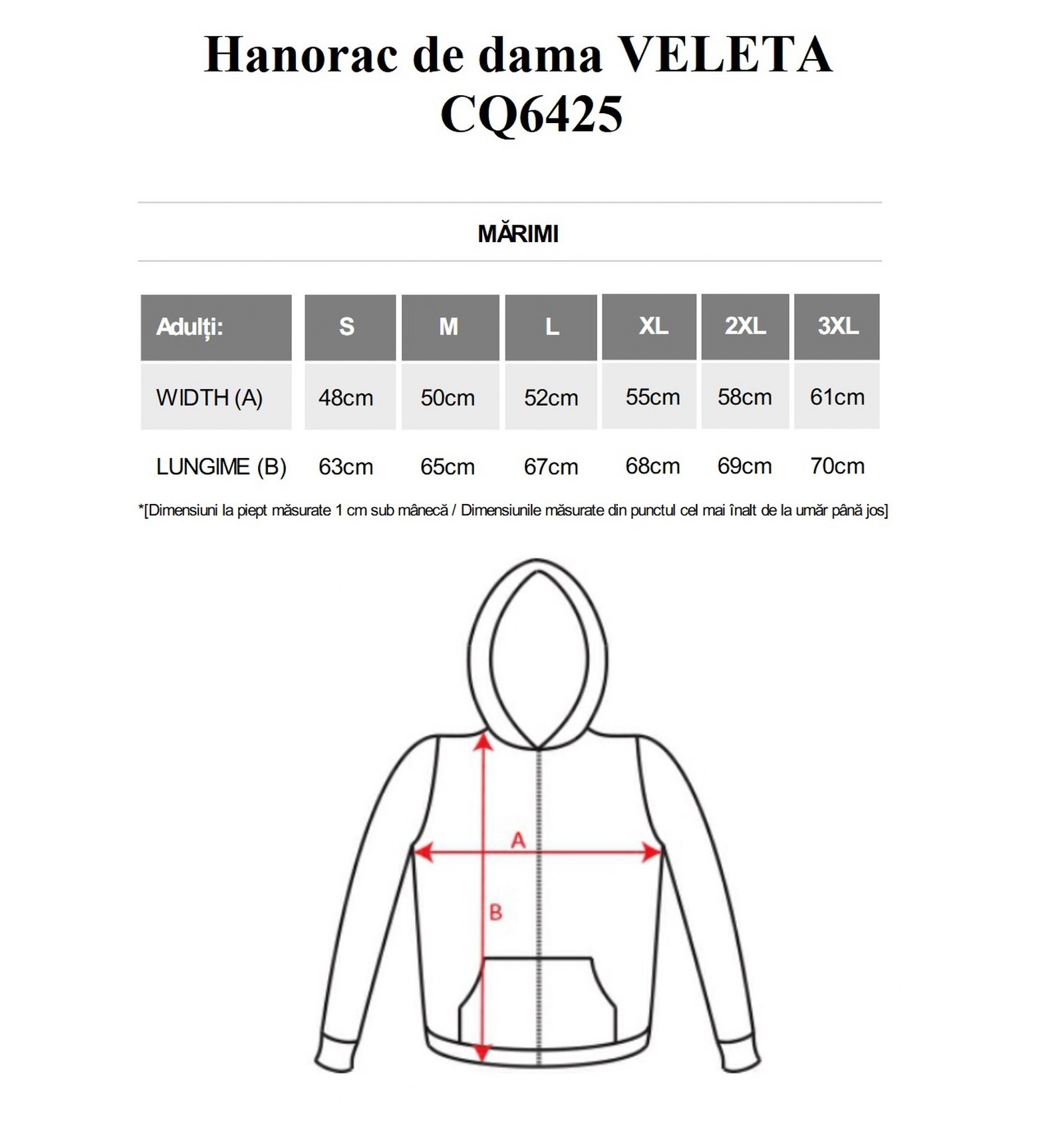 VELETA este un hanorac casual pentru dame, cu glugă căptușită de aceeași culoare, bandă întărită pentru acoperirea cusăturilor la gât și un design cambrat, numai bun pentru a vă putea desfășura activitățile de zi cu zi.