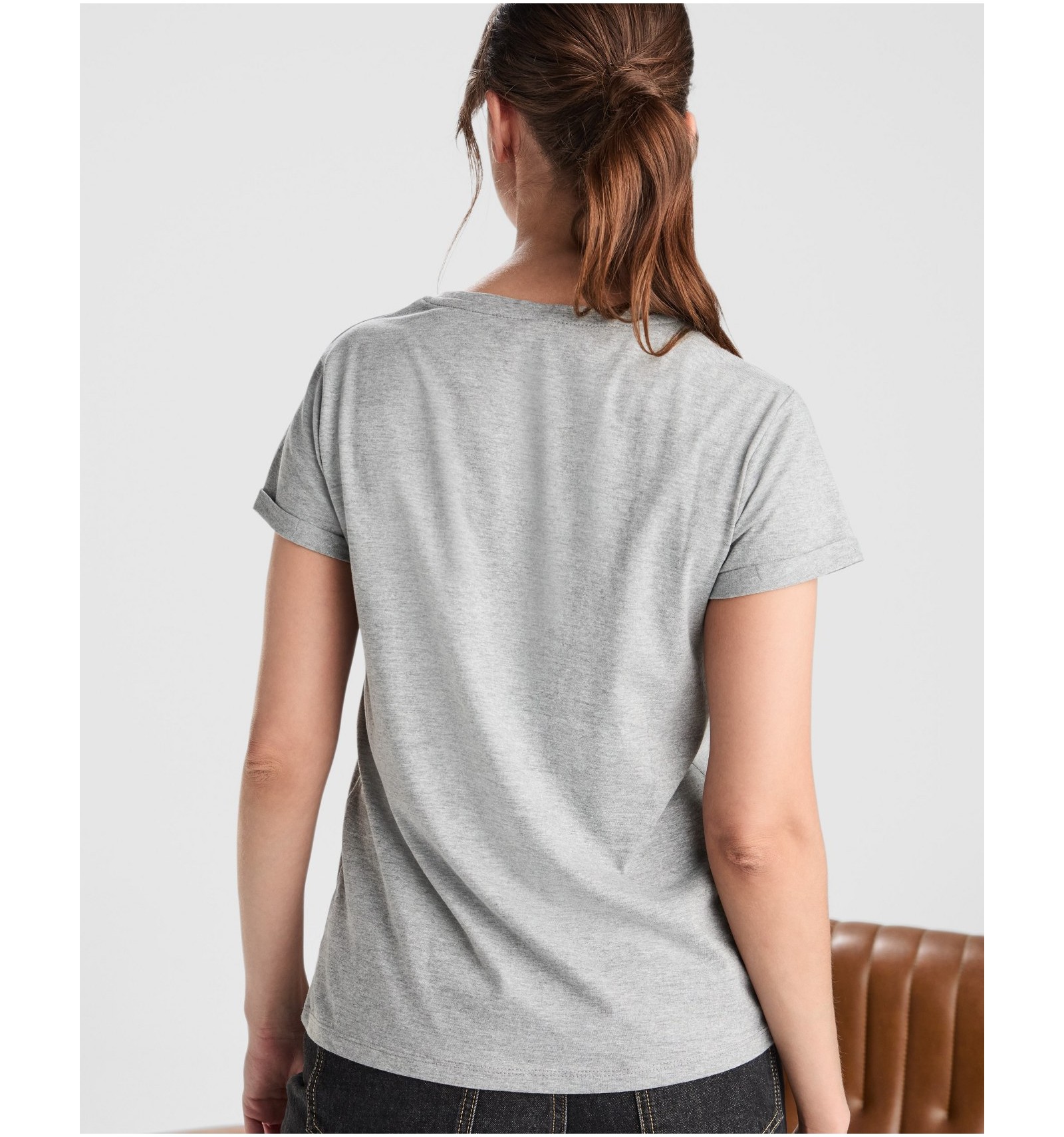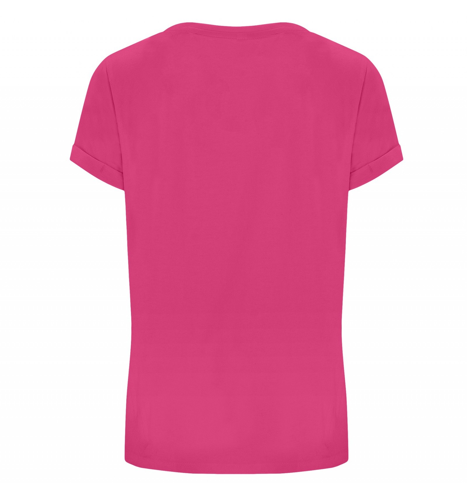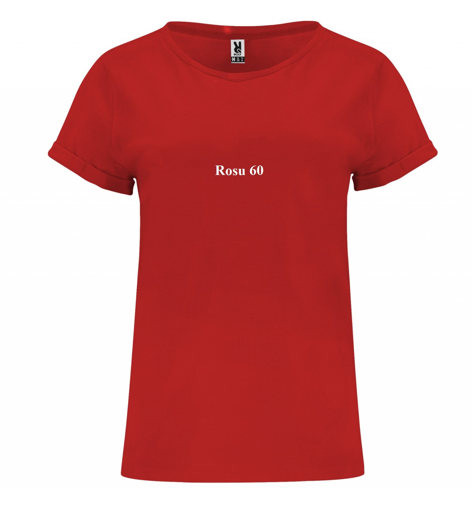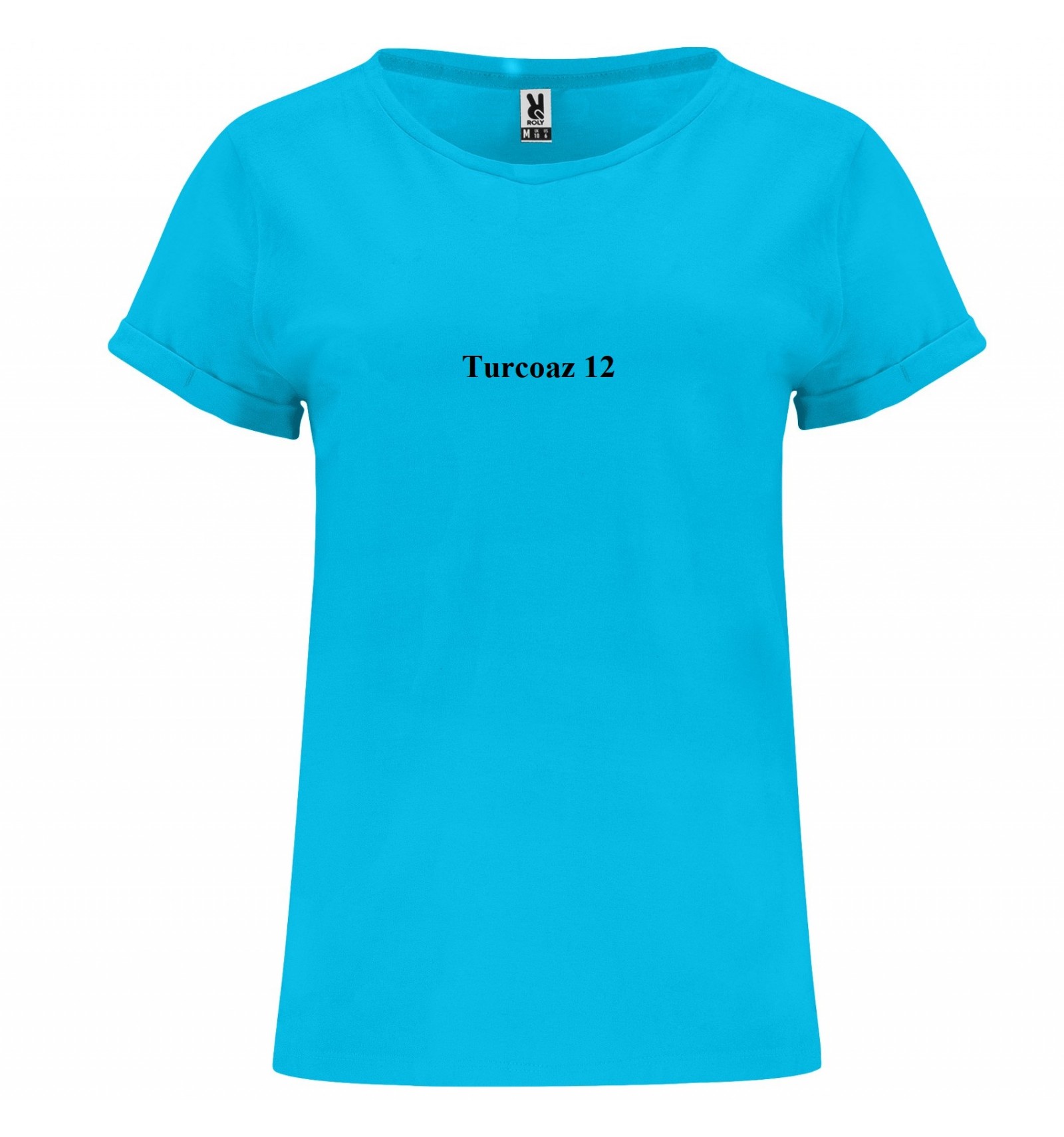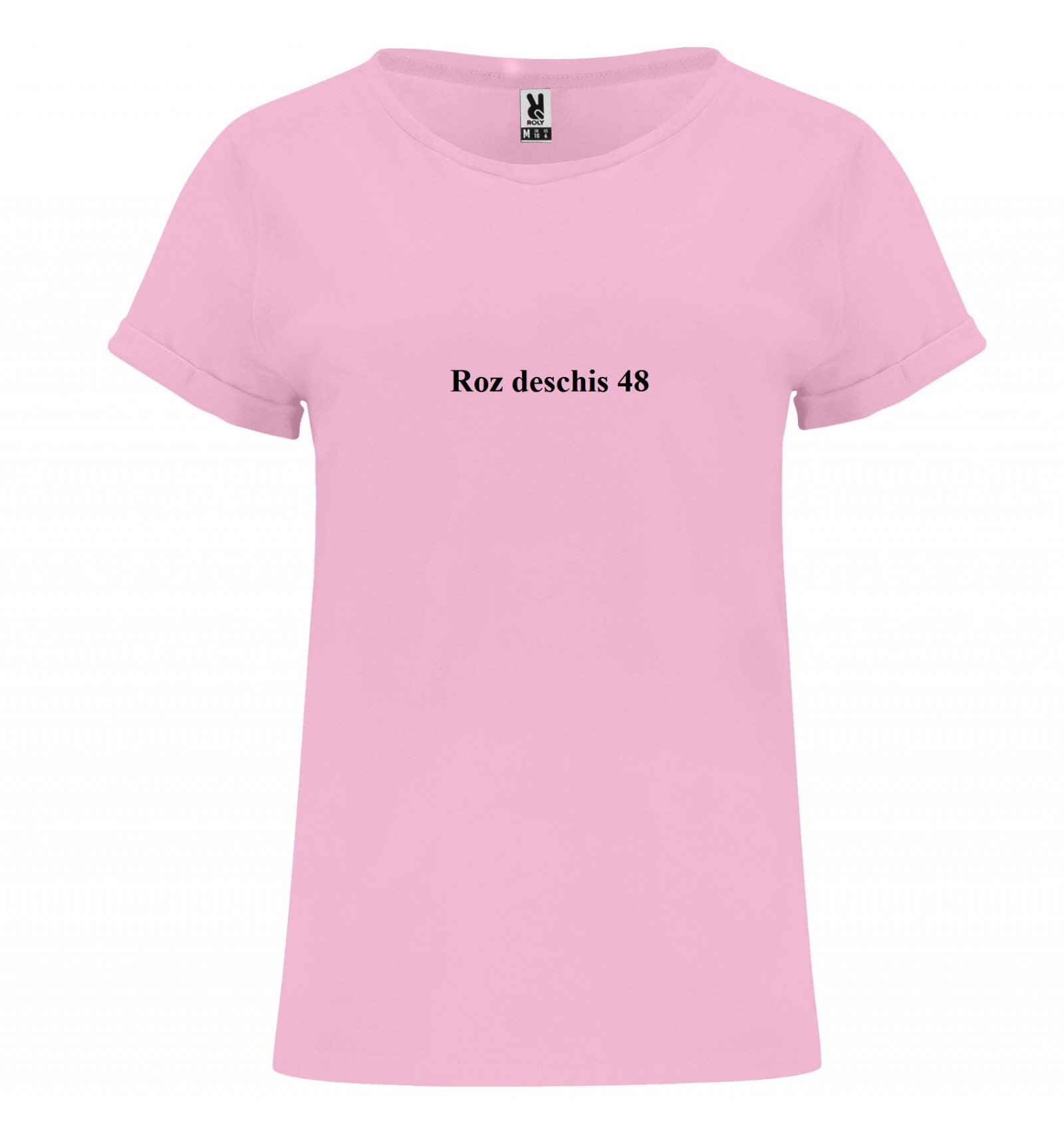 Tricou de damă cu mânecă scurtă. Guler la baza gâtului din același material și bandă pentru acoperirea cusăturilor la interior.