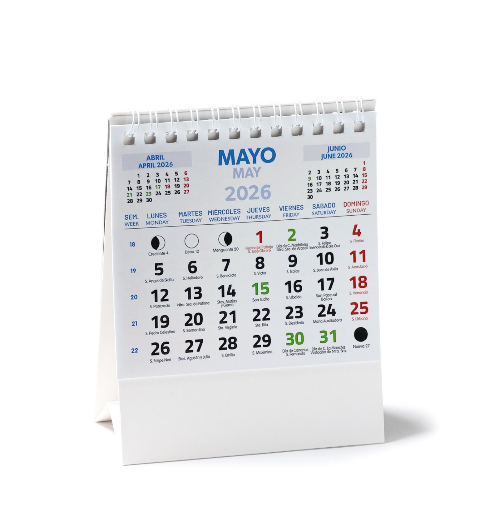 Calendar vertical de birou cu spira. Design luna curenta / luna precedenta / luna urmatoare / calendar anual. Include ziua sfin?ilor. Corp din carton ideal pentru inscriptionare.