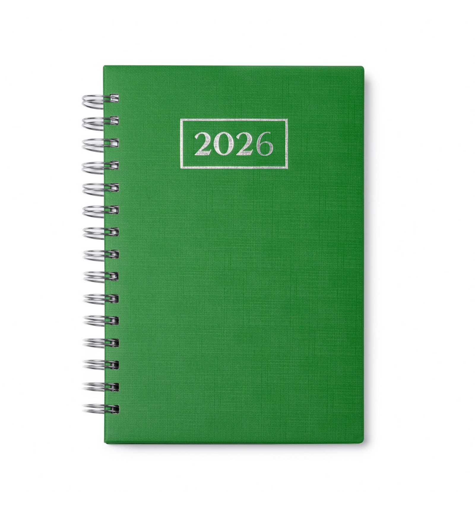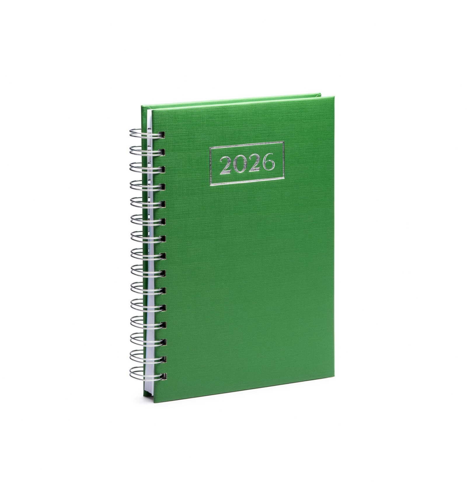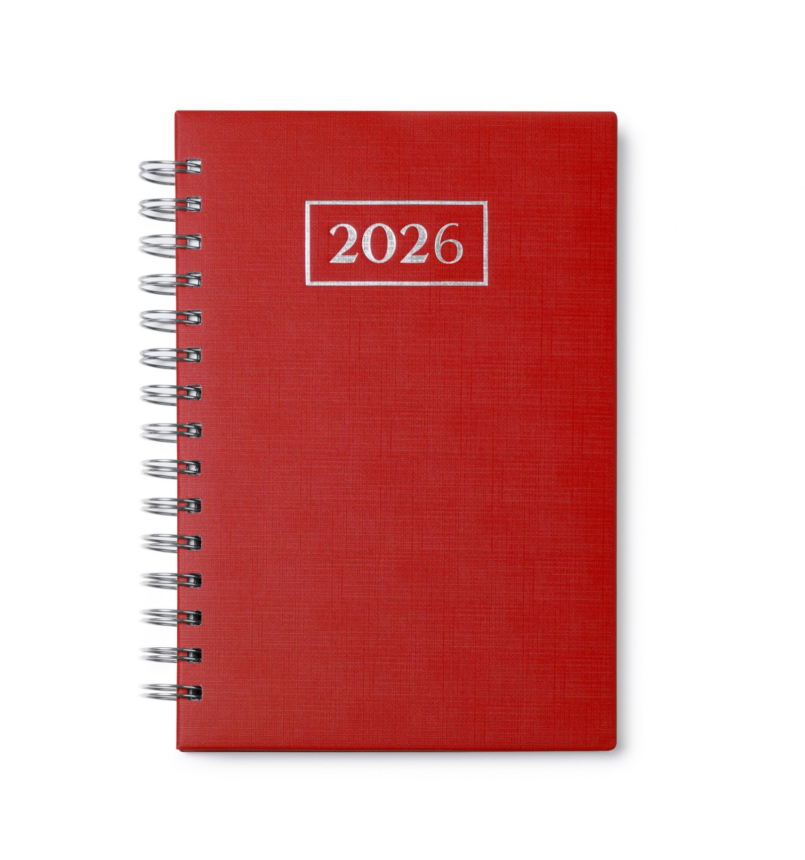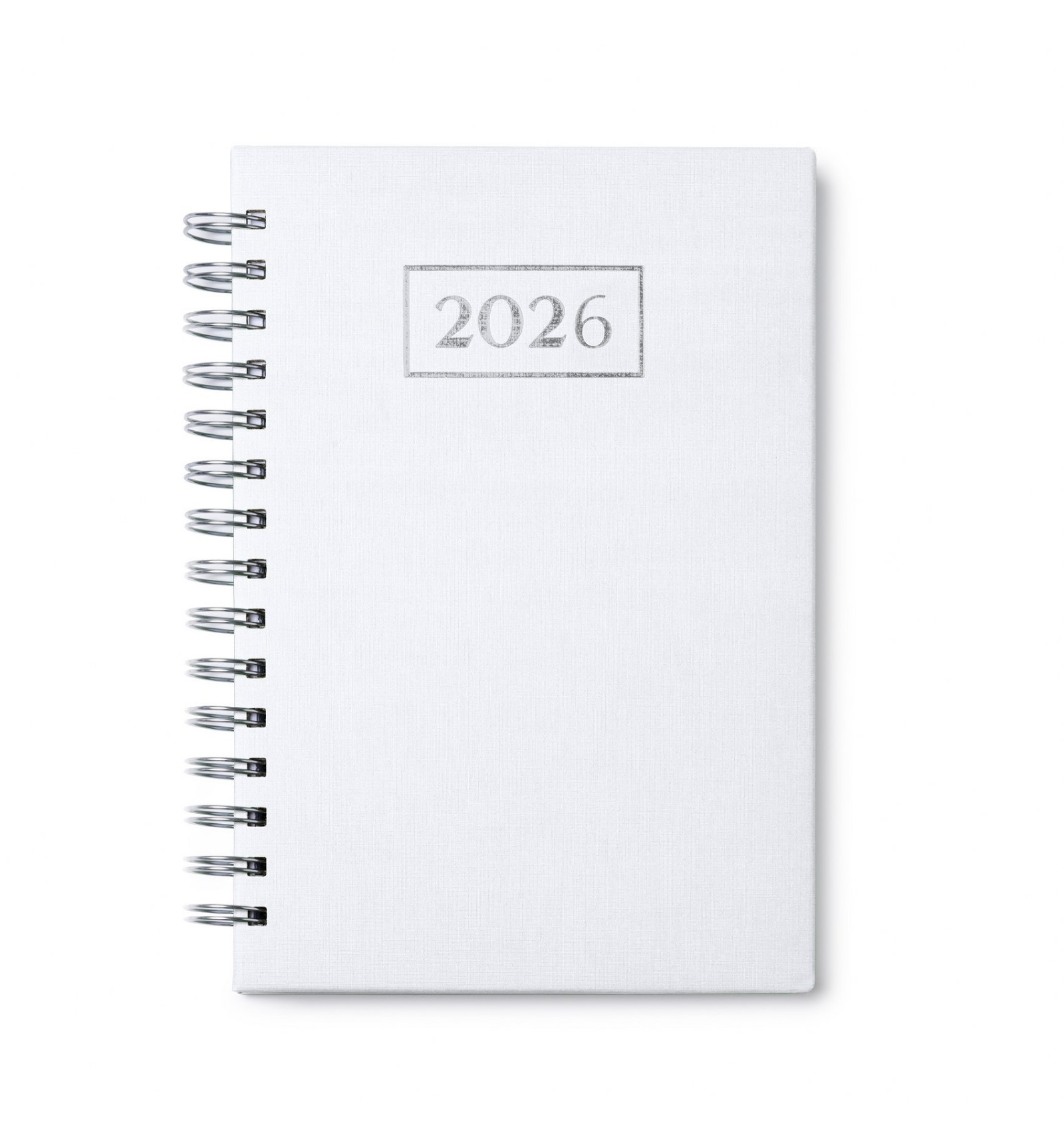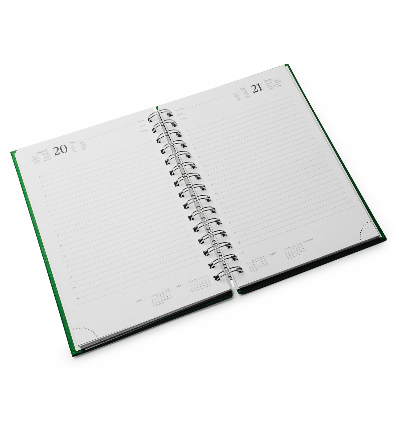 Agendă A5 cu spiră. Coperți căptușite din PU cu gravură în relief. 352 de pagini.