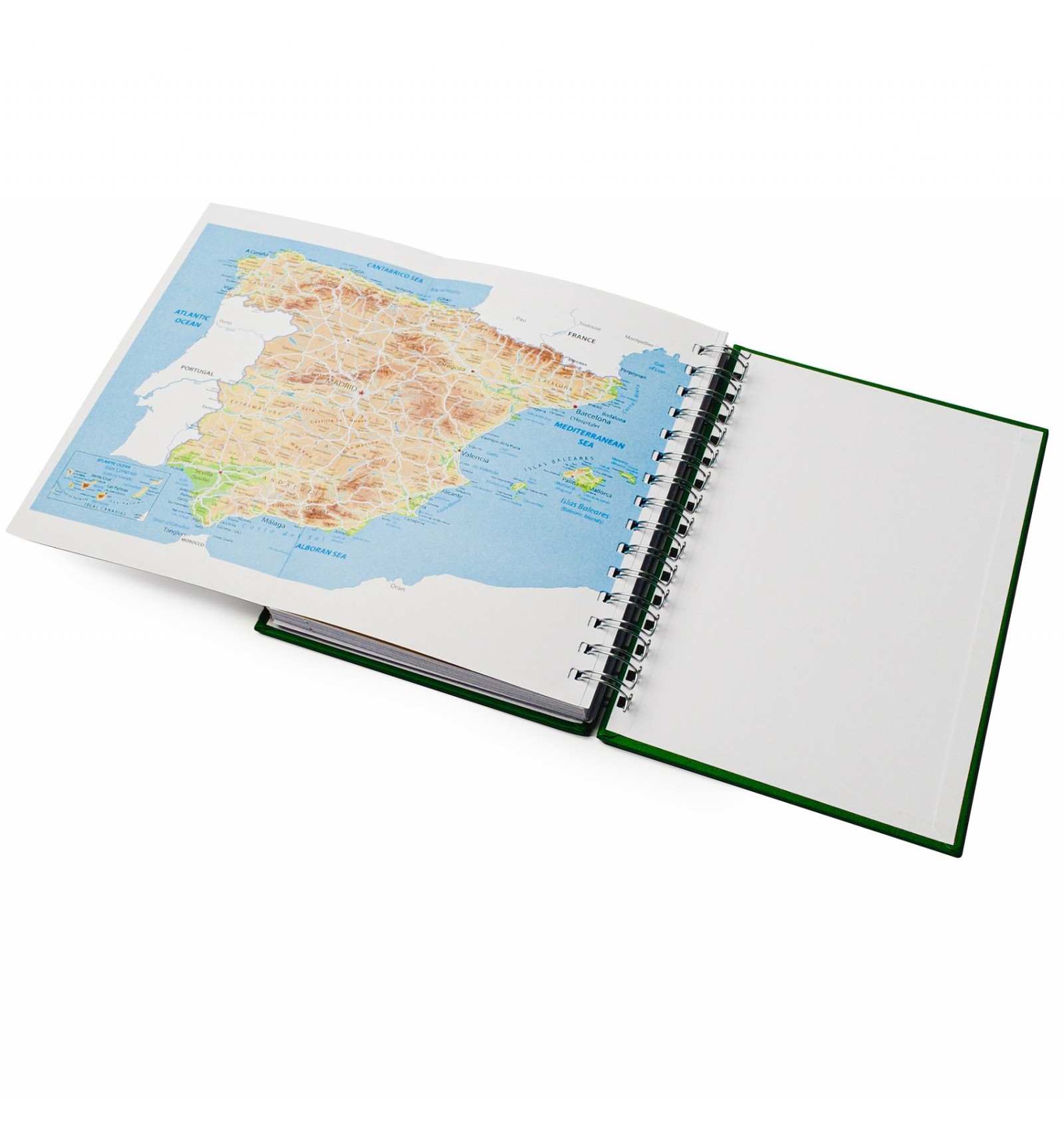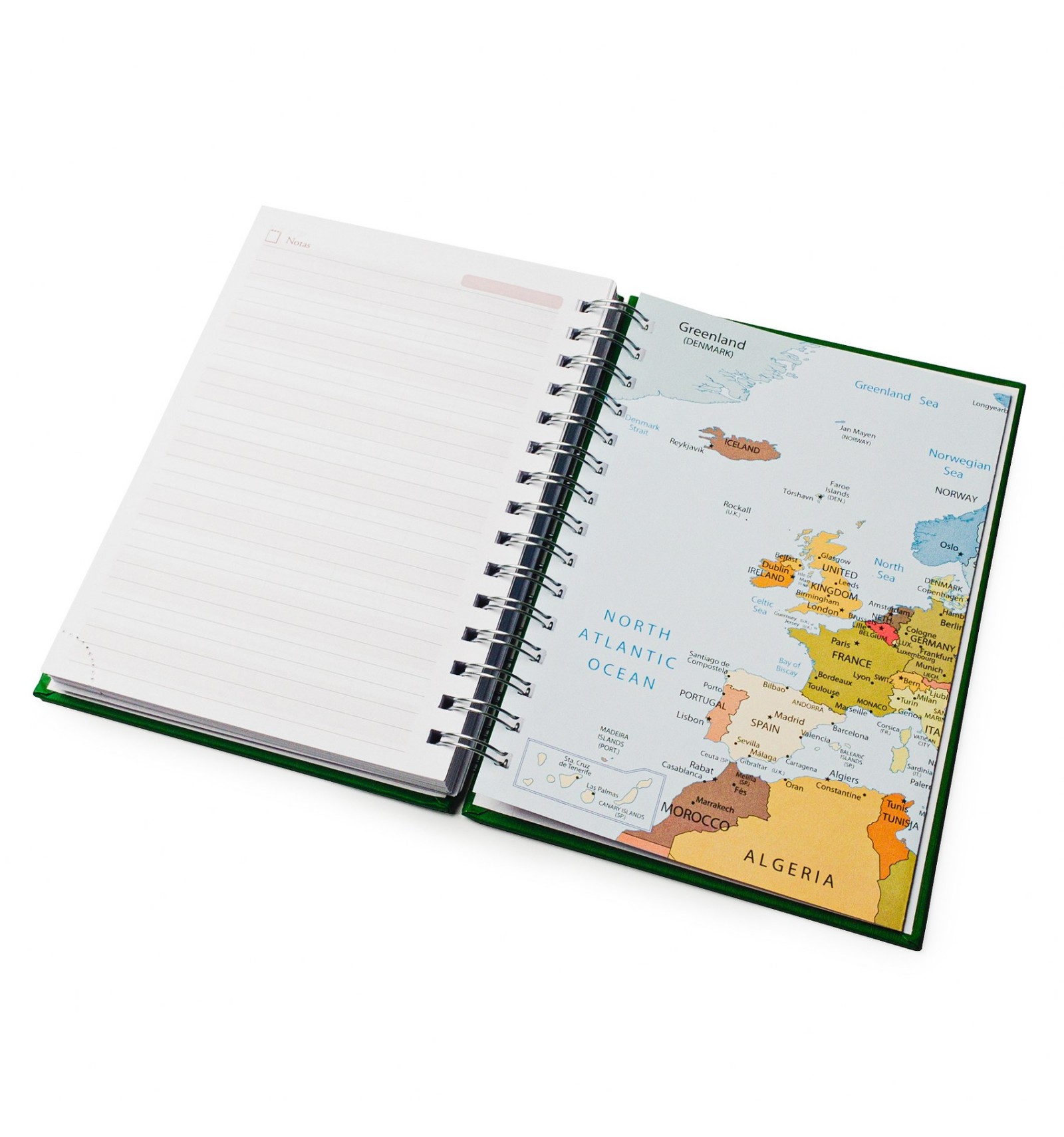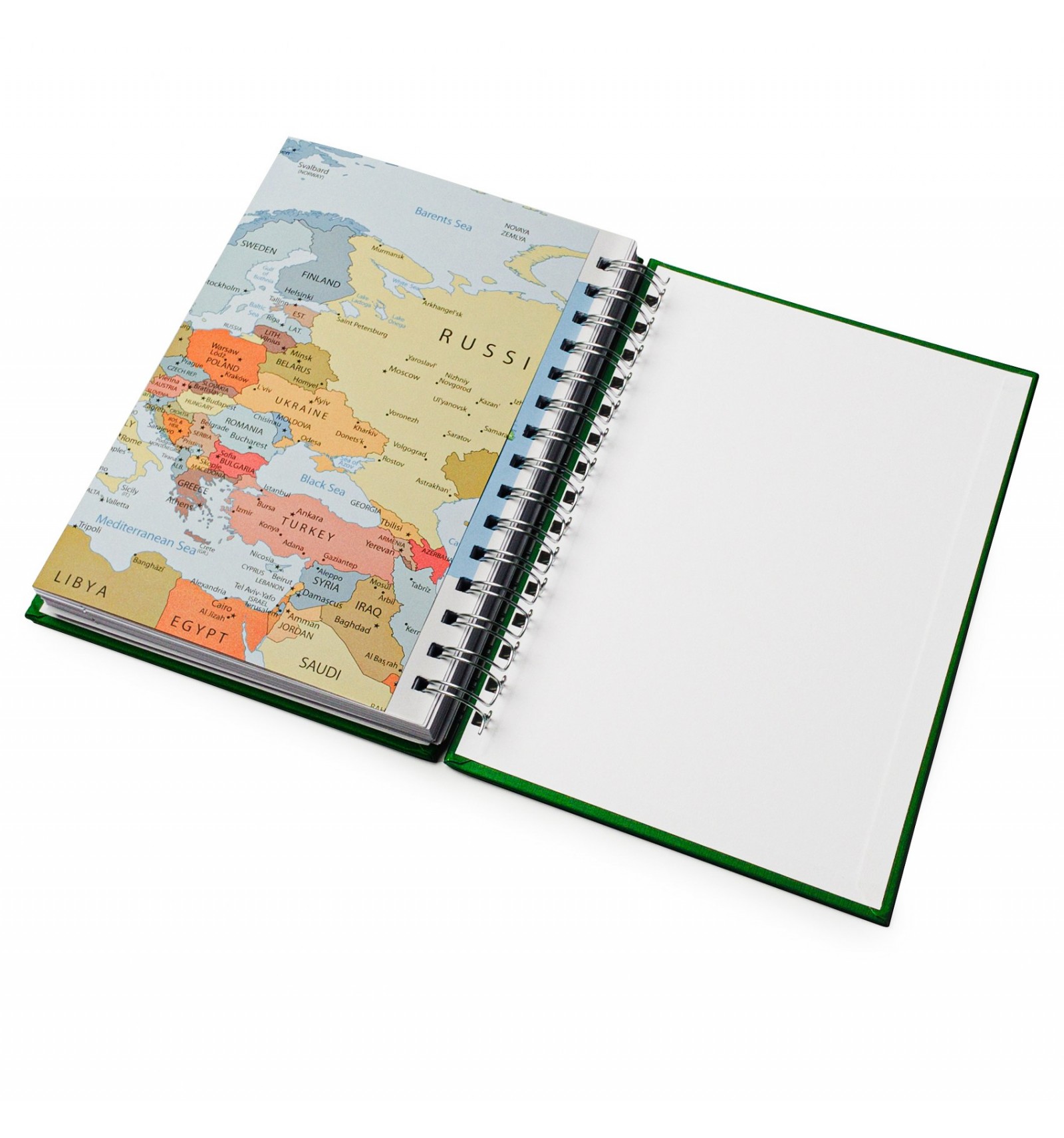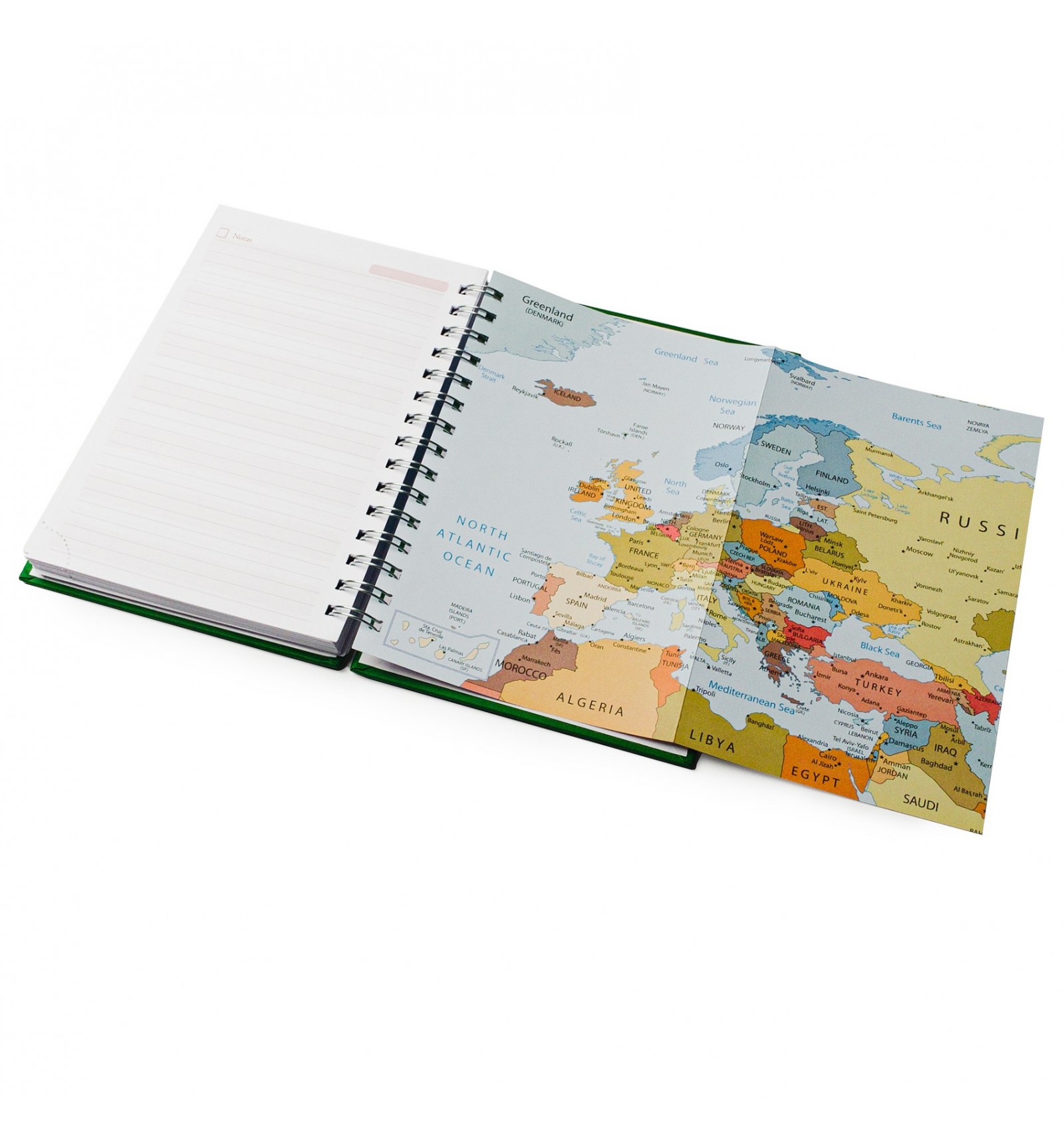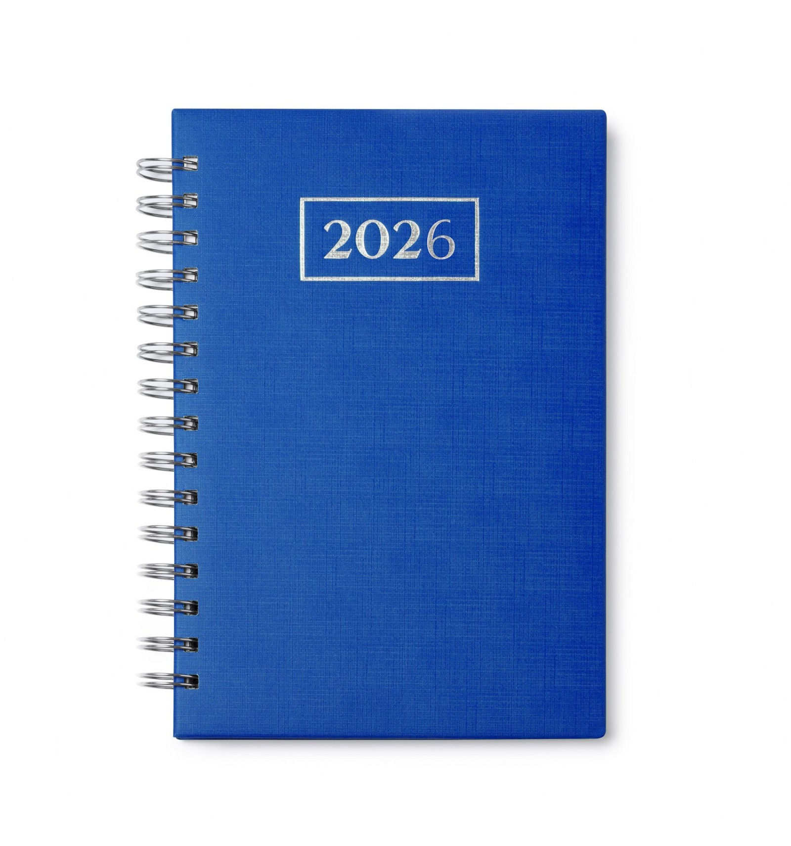 Agendă A5 cu spiră. Coperți căptușite din PU cu gravură în relief. 352 de pagini.