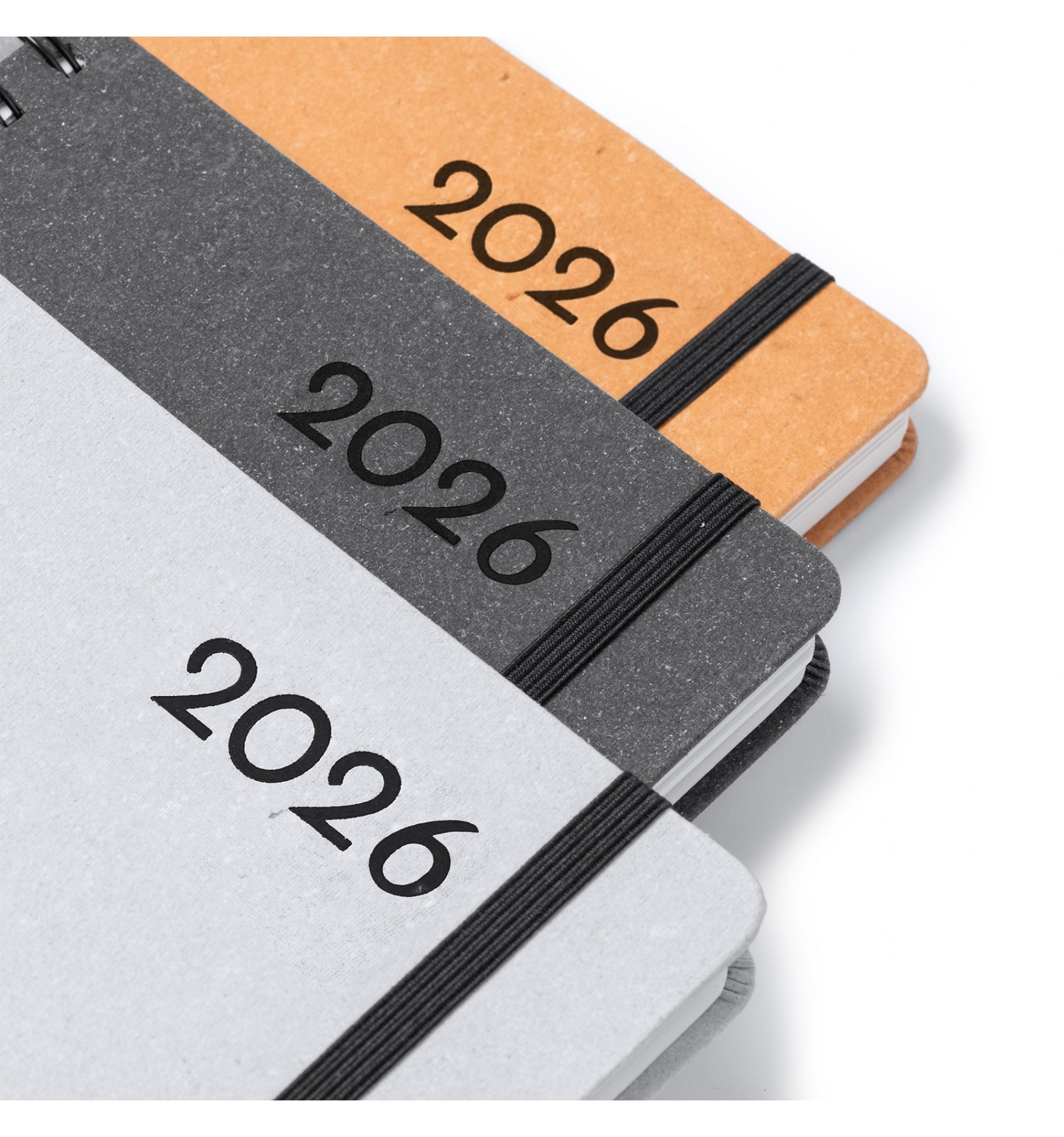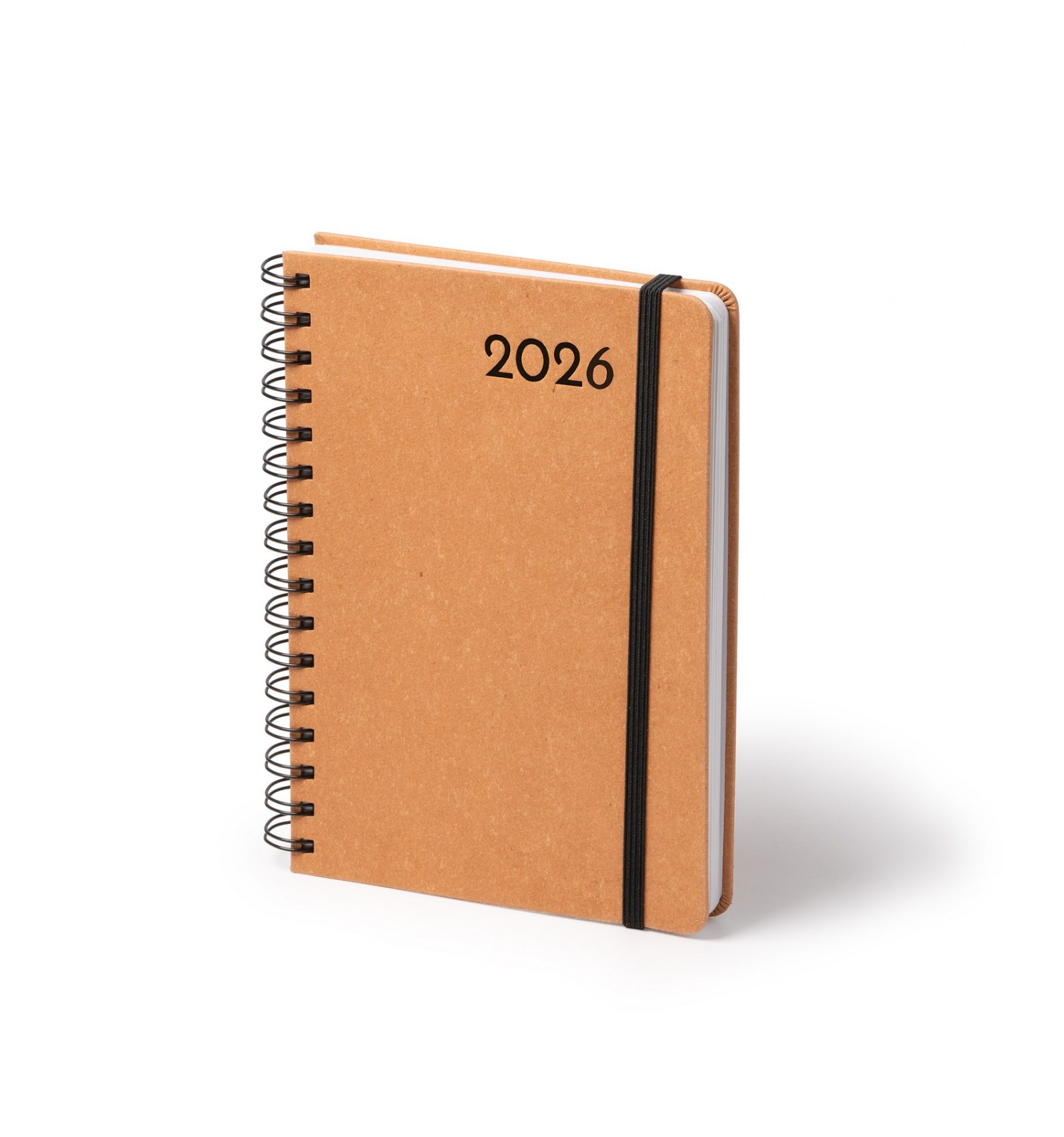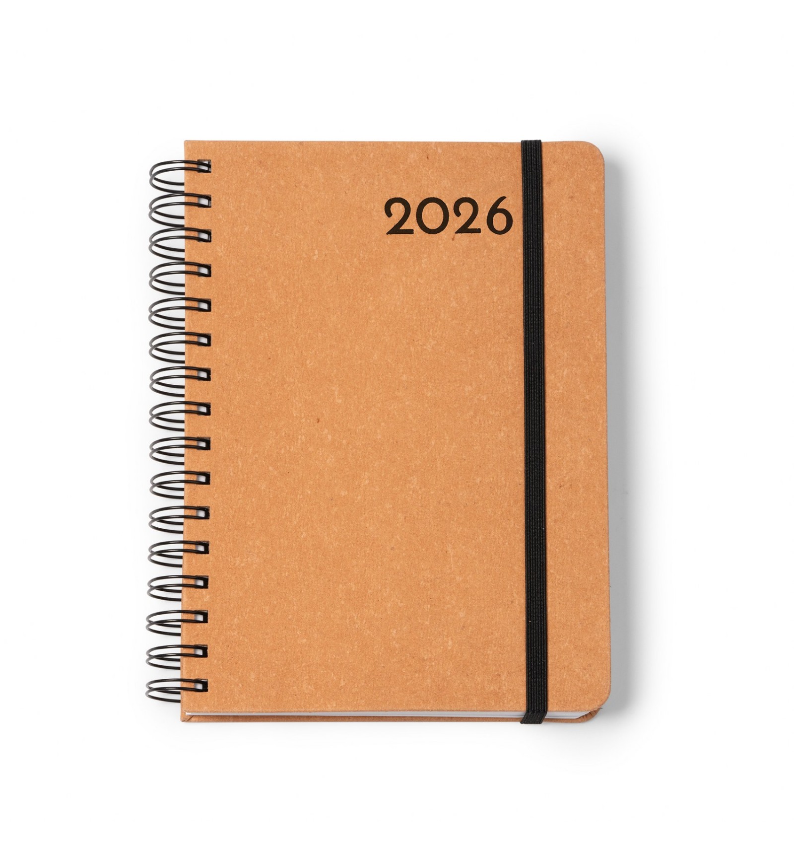 Agenda A5 cu spirala si coperți din piele reciclată. Anul embosat în relief redus și bandă elastică. Dispune de 348 de pagini de hârtie albă și 4 pagini suplimentare cu hărți. Ideal pentru a vă păstra notițele organizate cu stil și durabilitate.