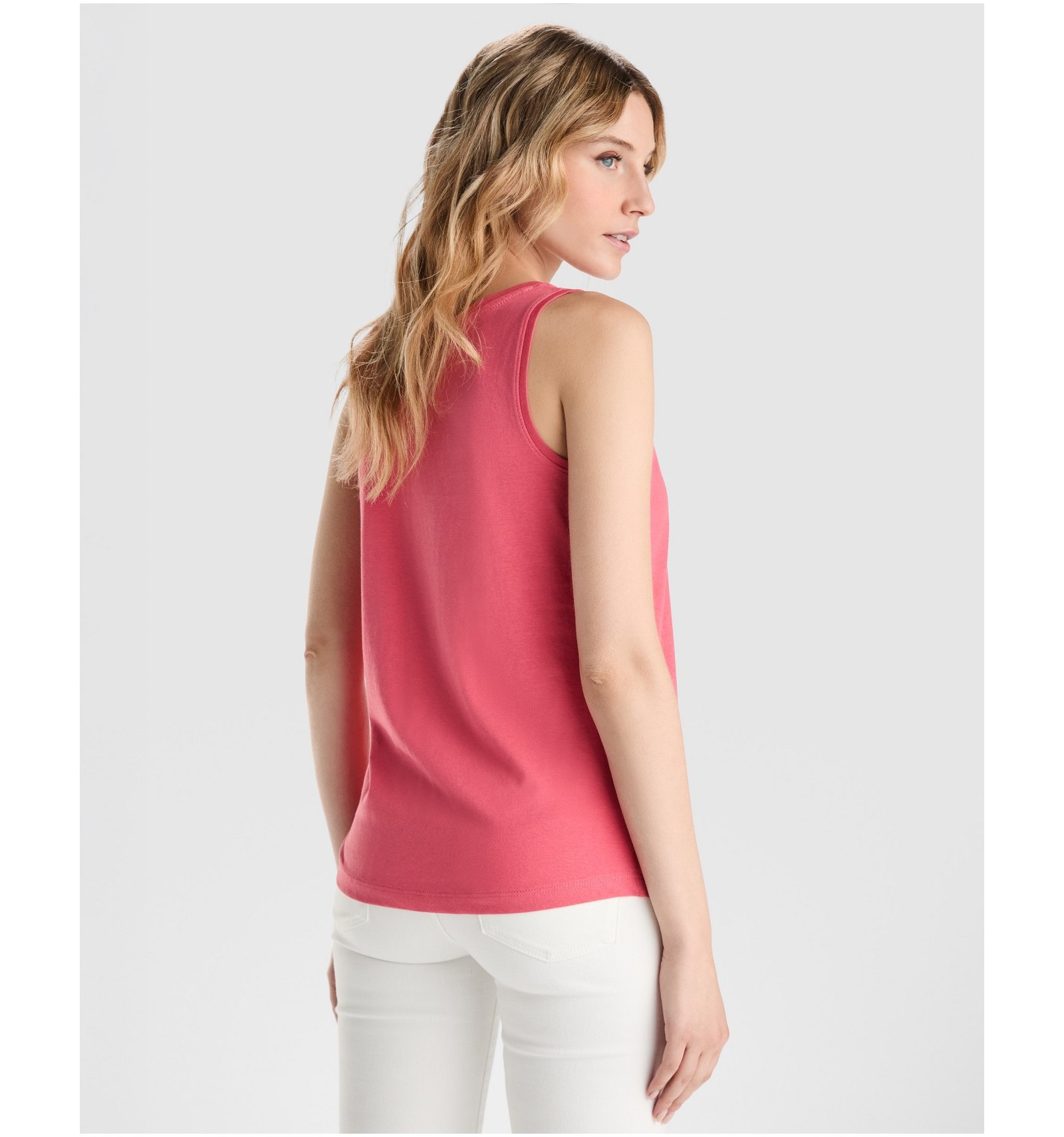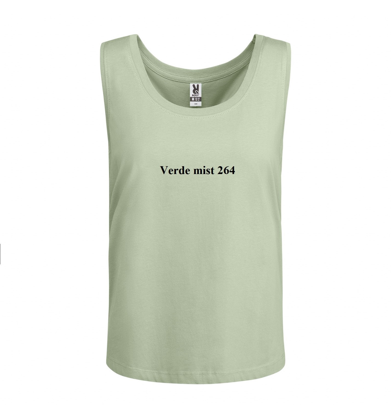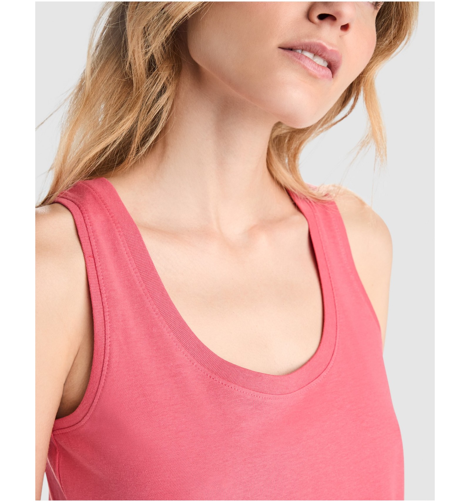Tricou larg pentru femei cu bretele largi. 1x1 decolteu și mâneci cu striații. Tiv rotund. Cusături laterale.