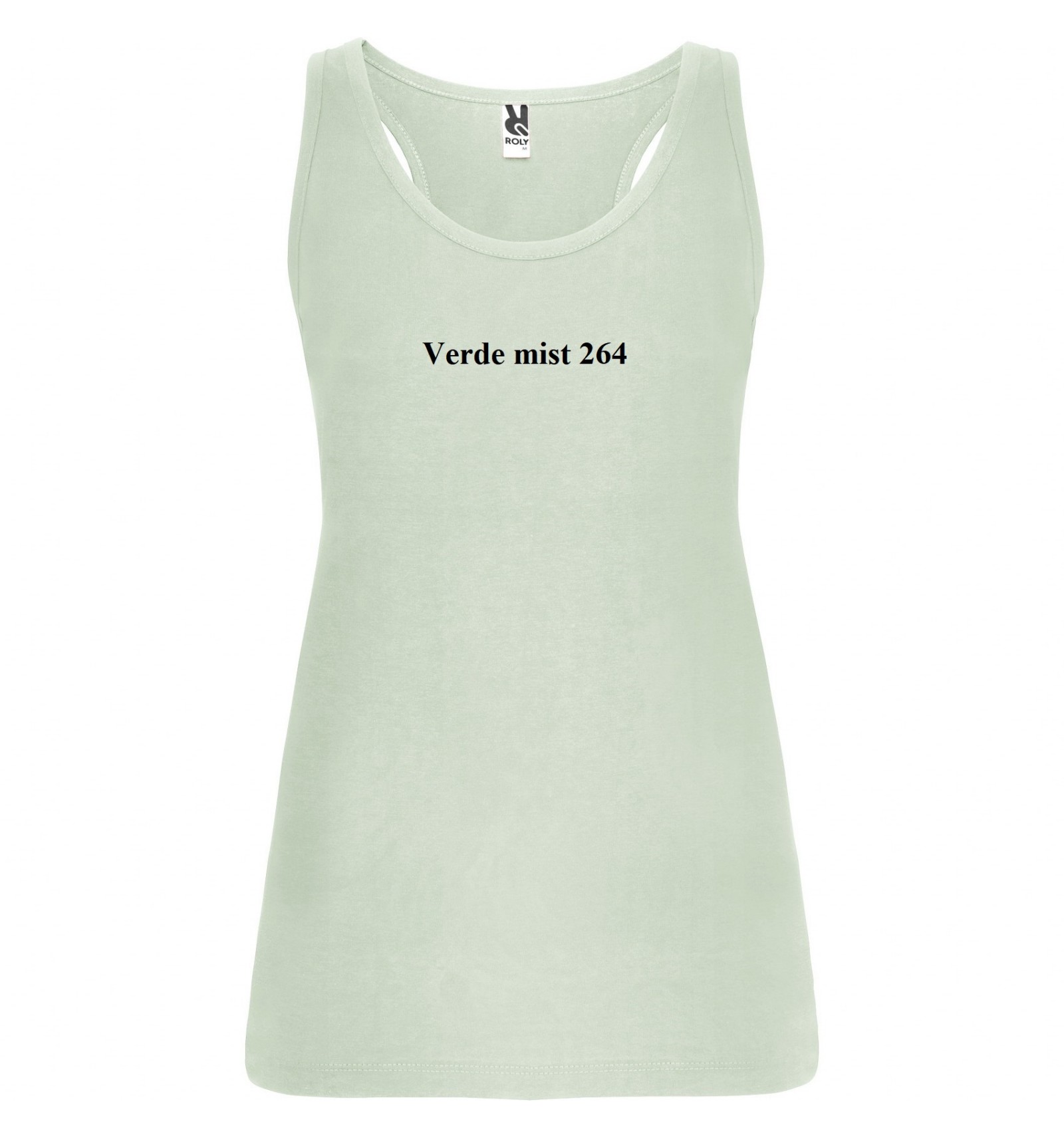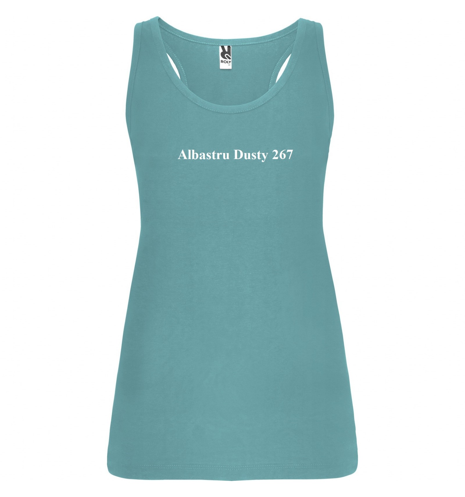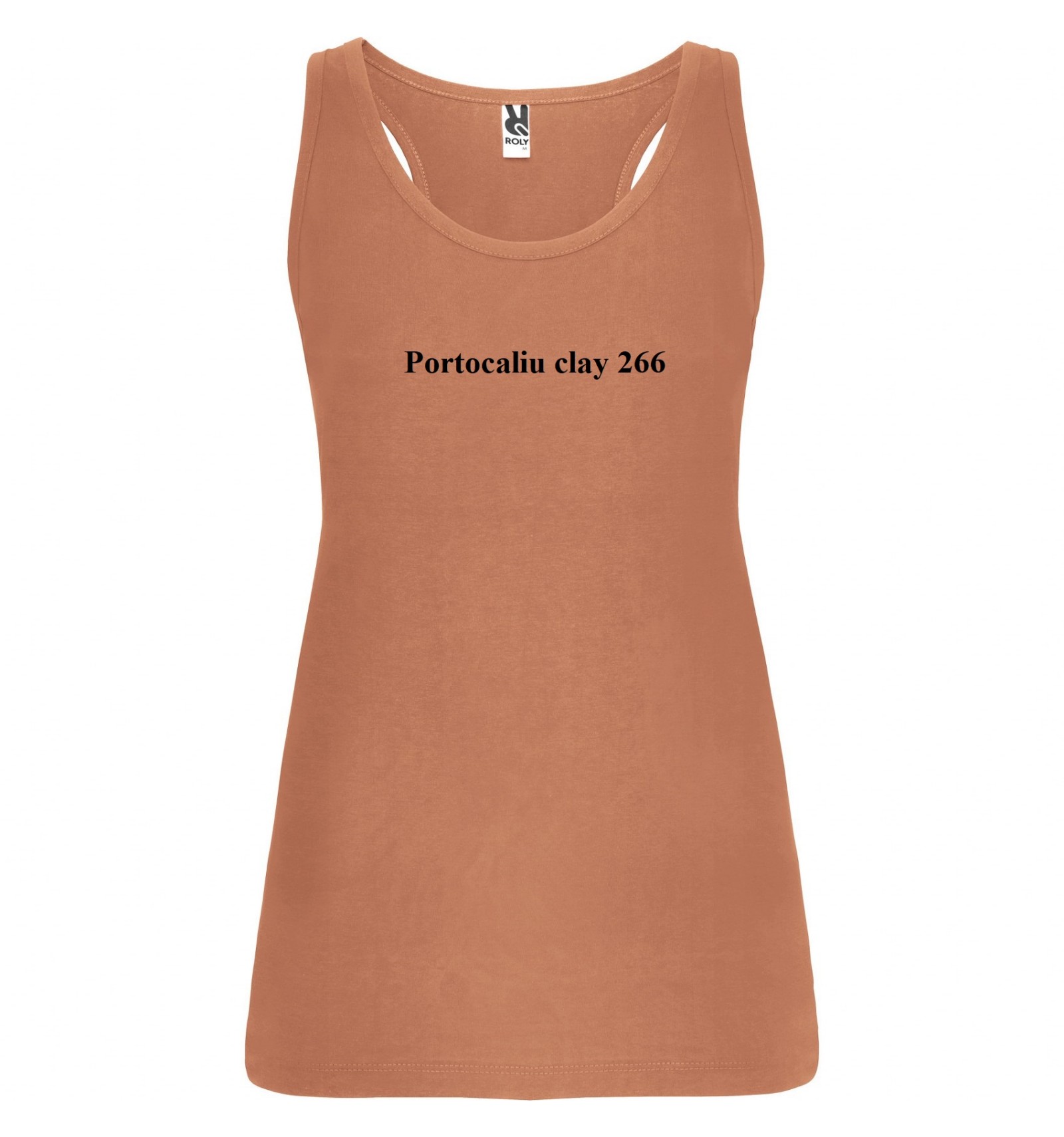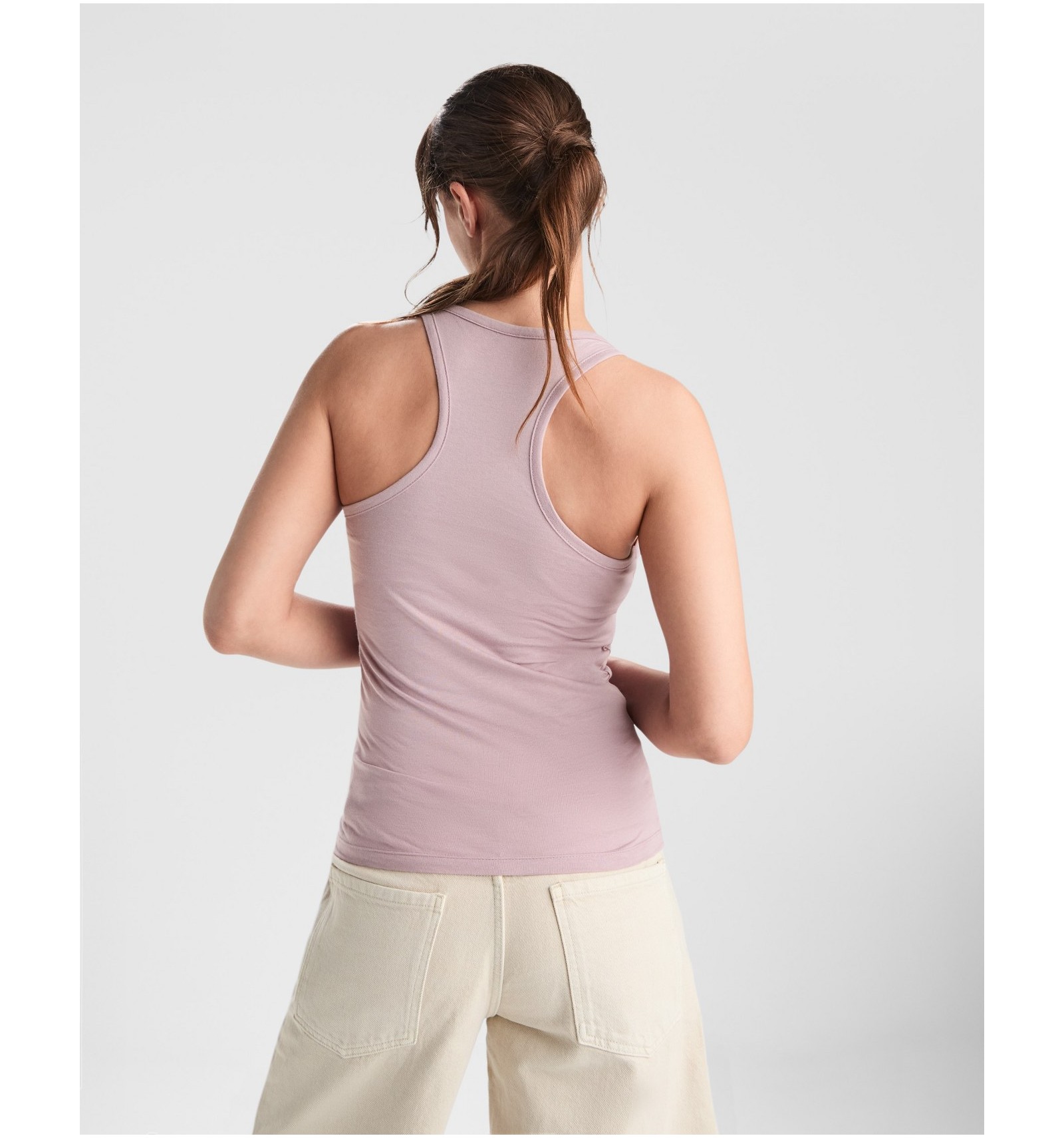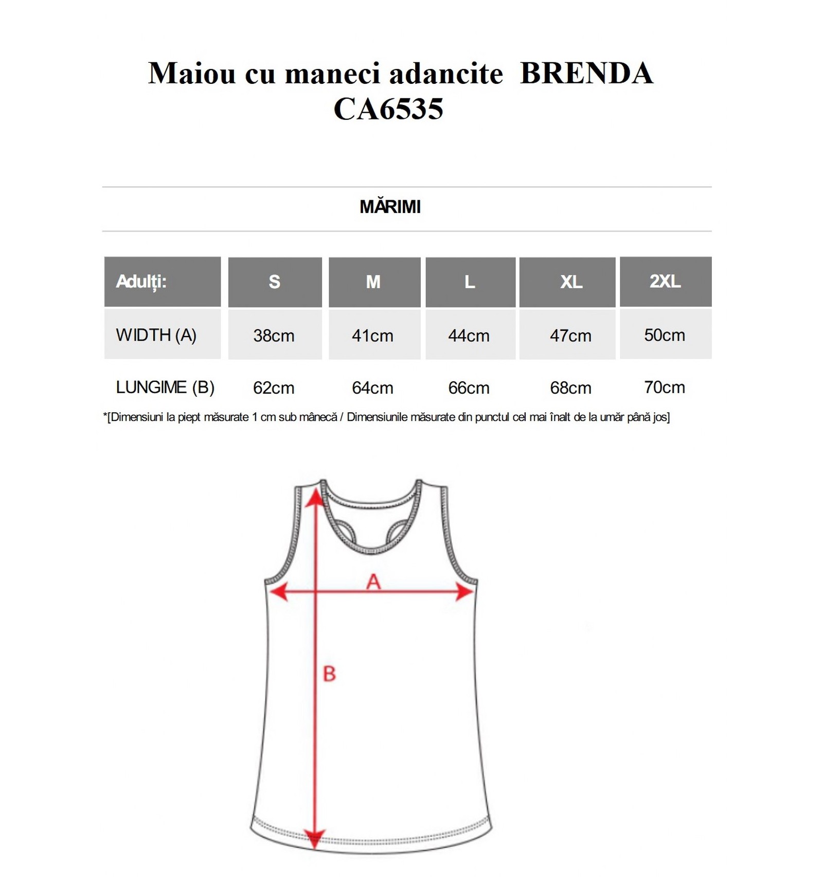 Maiou cambrat, cu răscroiala mânecii și decolteu cu garnitură lată și răsucită. Spate tip înotător și cu cusături laterale.