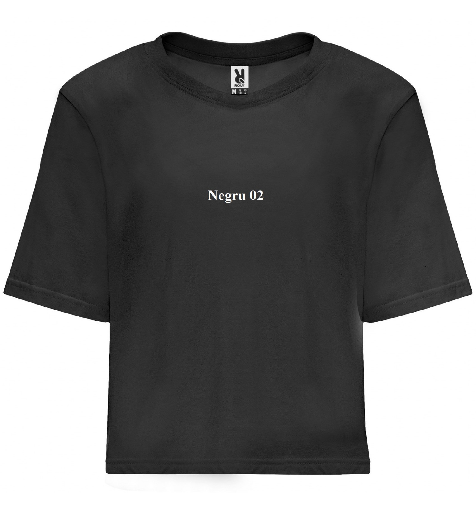 Tricou larg de damă cu mânecă scurtă. Guler rotund cu bordură lată în canalé 1x1. Bandă întărită pentru acoperirea cusăturilor de aceeași culoare.