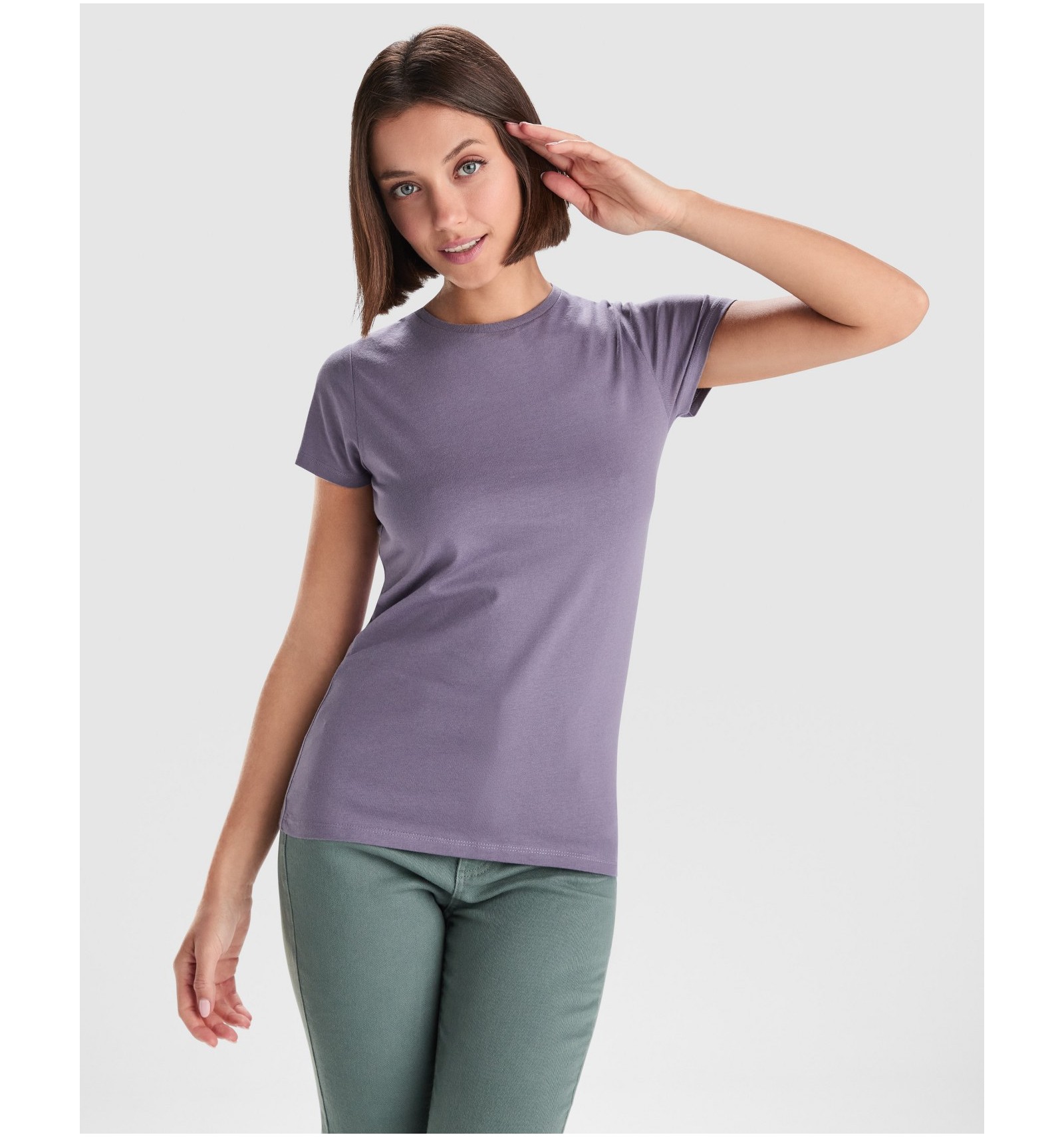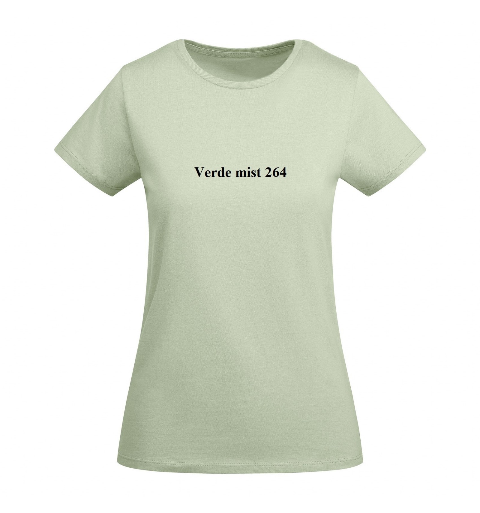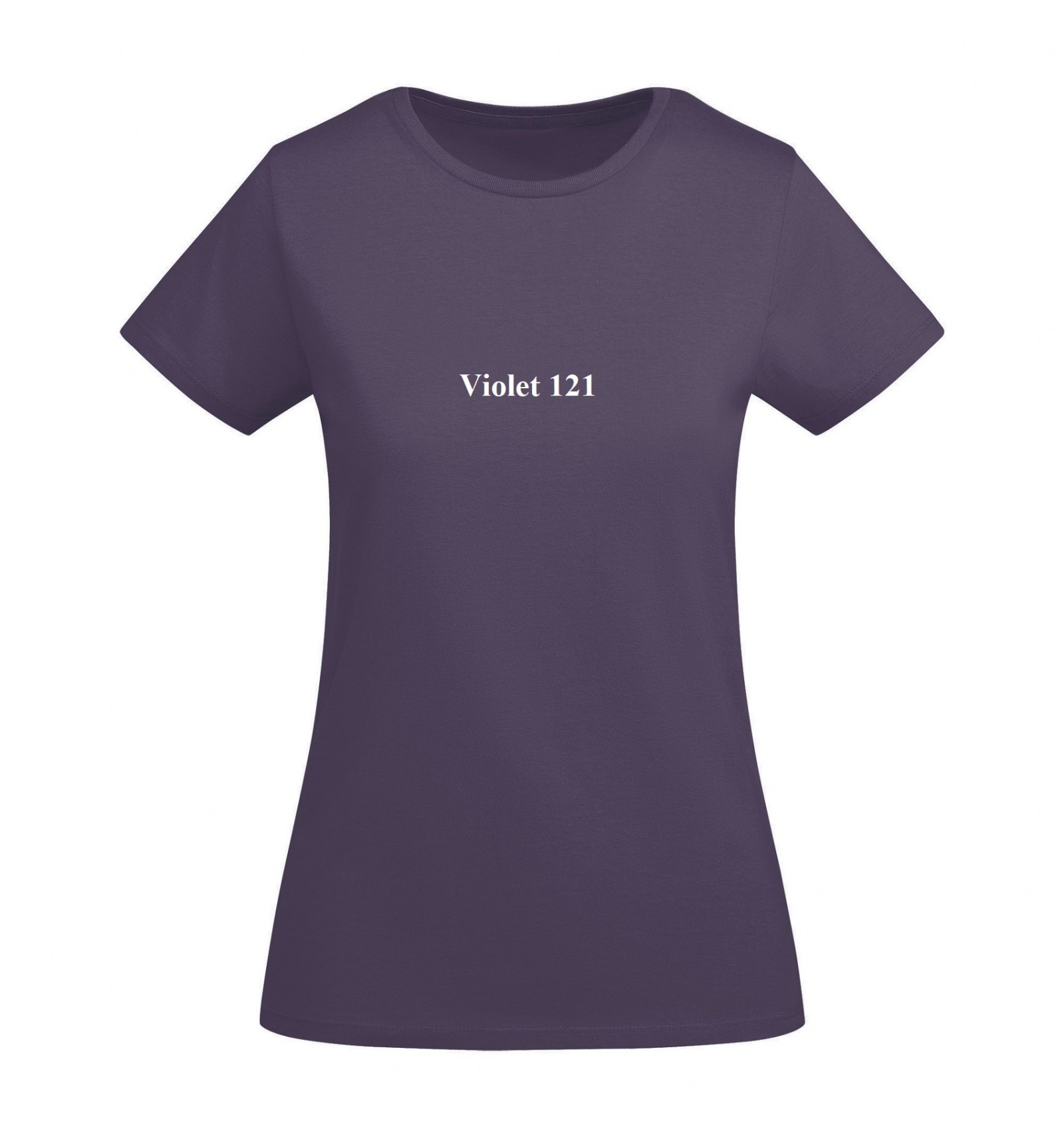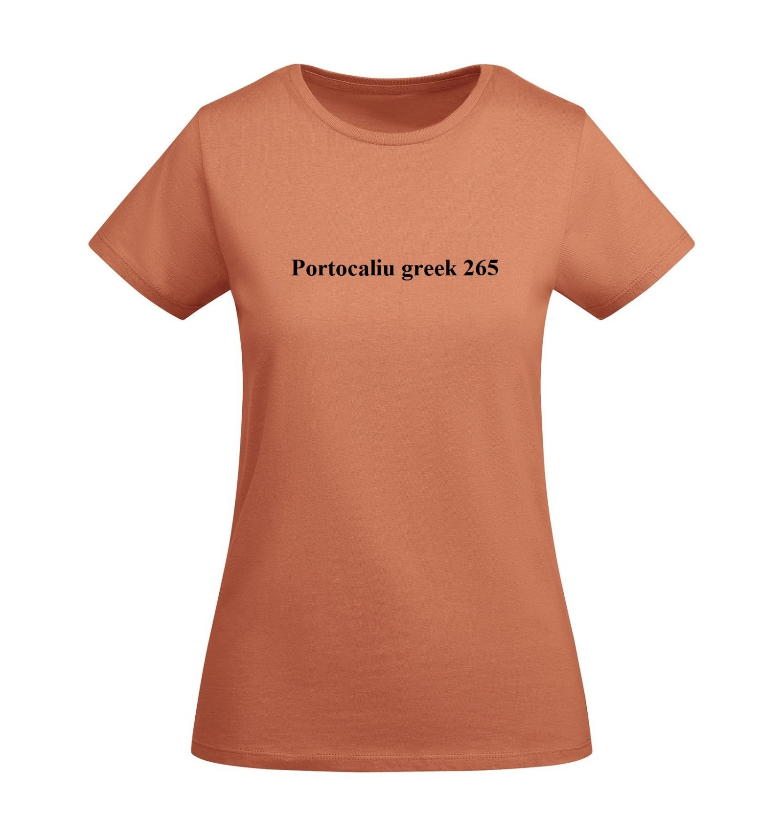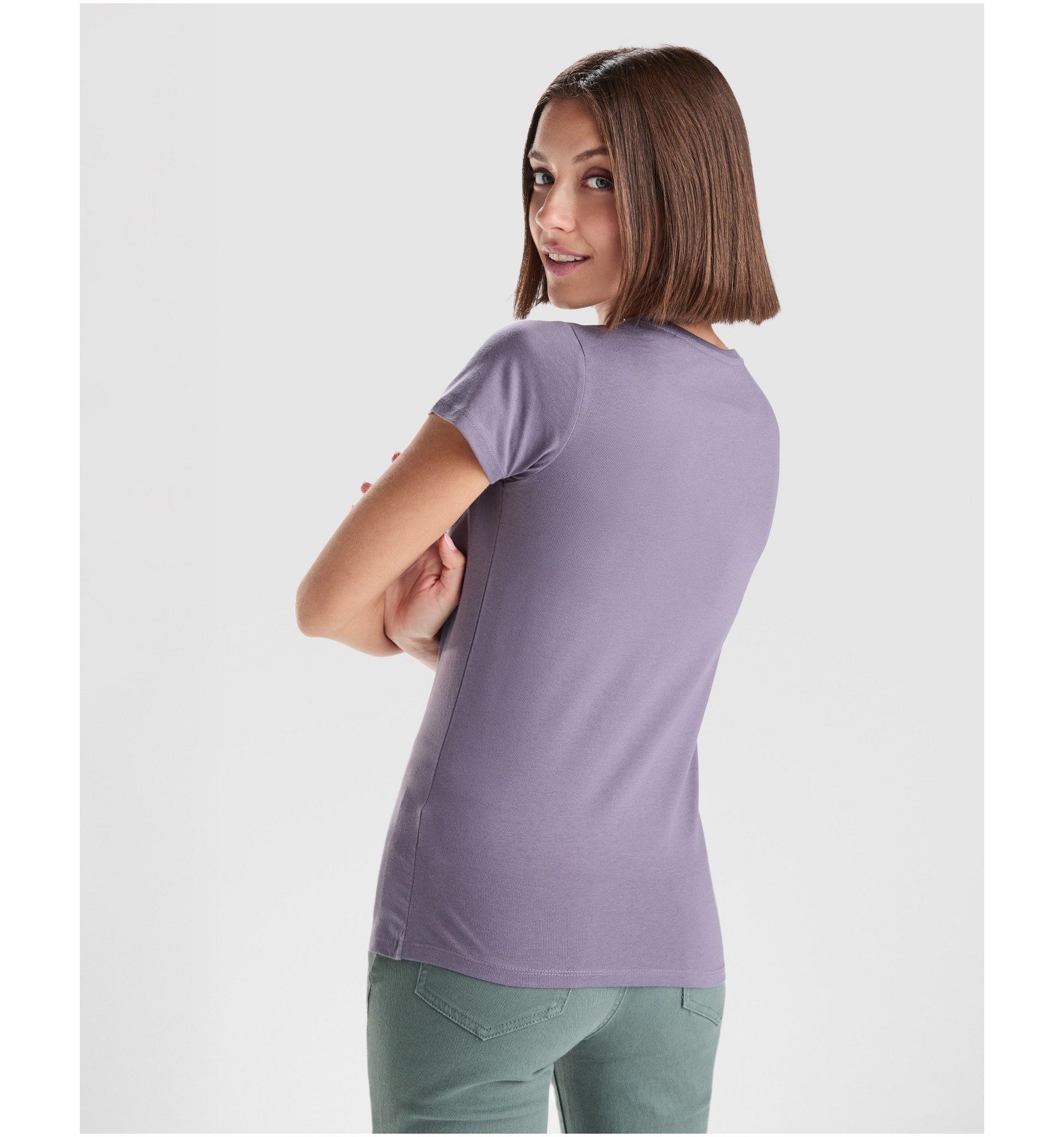 Tricou cambrat cu mânecă scurtă de damă din bumbac ecologic certificat OCS. 1x1 decolteu rotund cu striații.