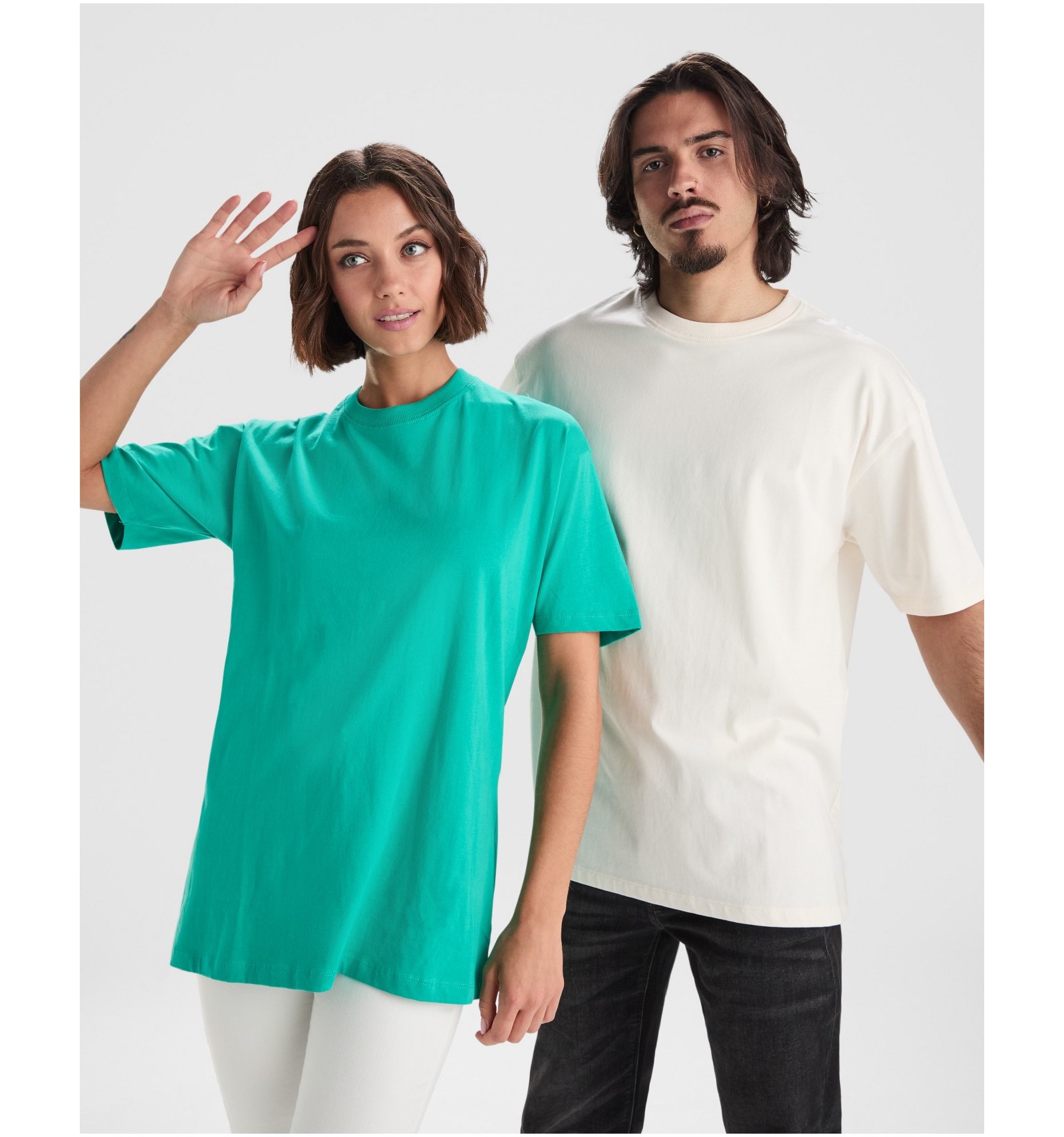 Tricou cu mânecă scurtă în stil oversize. Guler rotund cu rib în canalé 2x1 cu bandă pentru acoperirea cusăturilor în ton asortat. Cusături laterale. Cusături duble late pe mâneci și tiv.