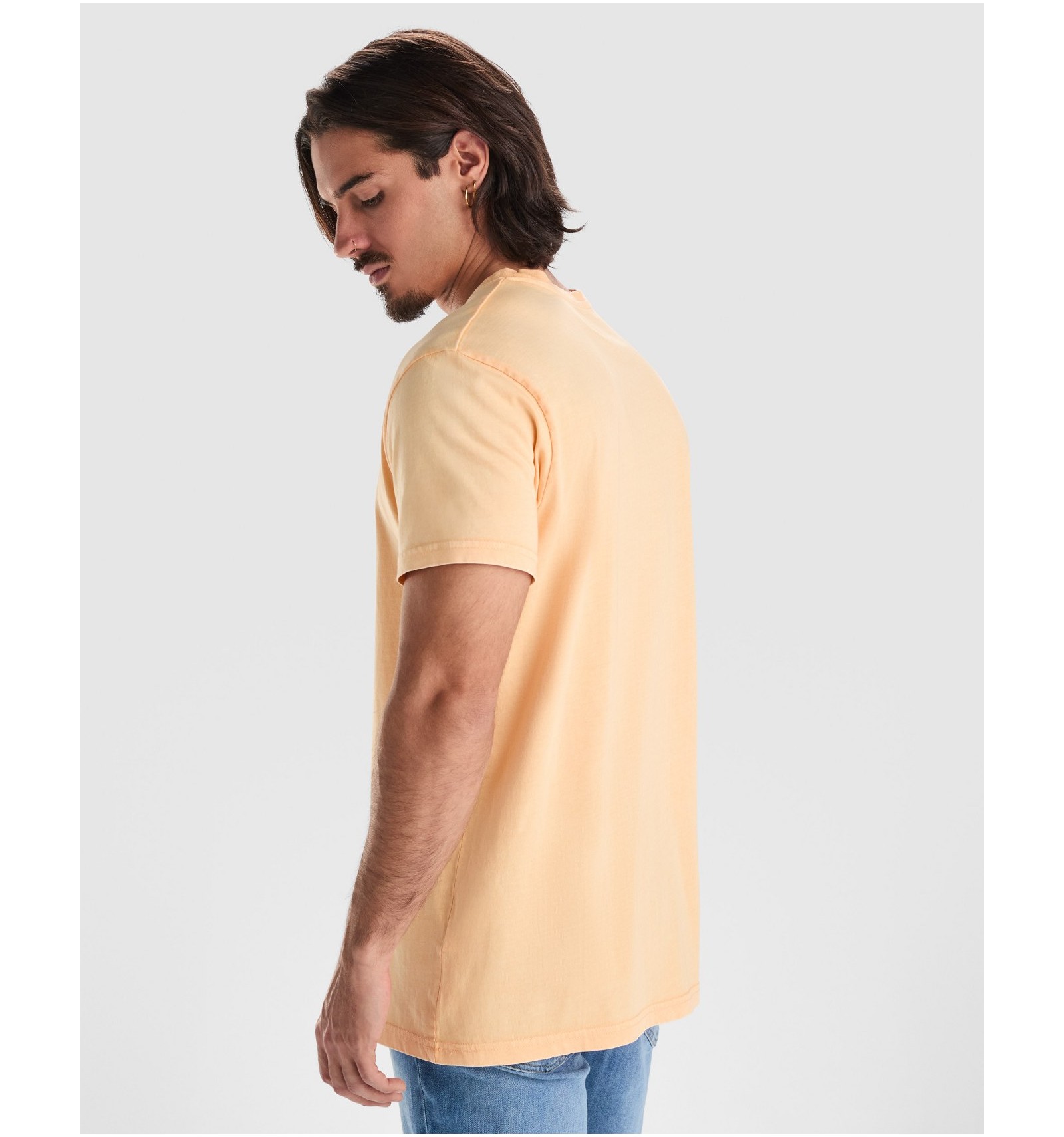 Tricou cu mânecă scurtă pentru bărbați. Bumbac pieptănat cu efect decolorat. Guler rotund cu nervuri 1x1.