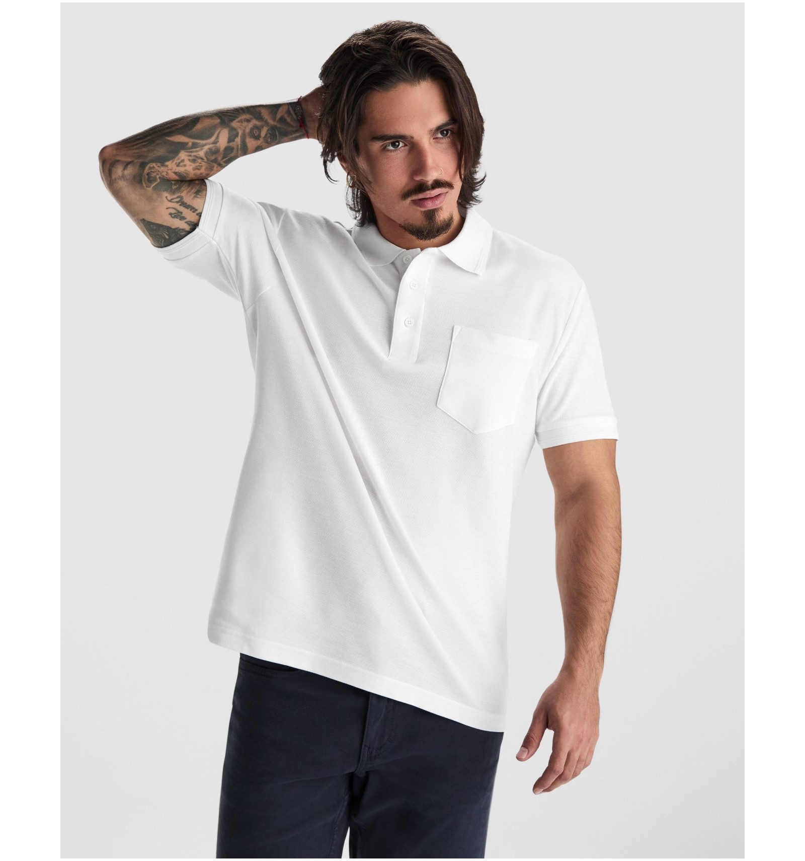 Tricou polo cu mânecă scurtă și buzunar la piept stânga. Guler și manșete în canalé 1x1 . Fantă cu 3 nasturi. Bandă întărită pentru acoperirea cusăturii la guler.