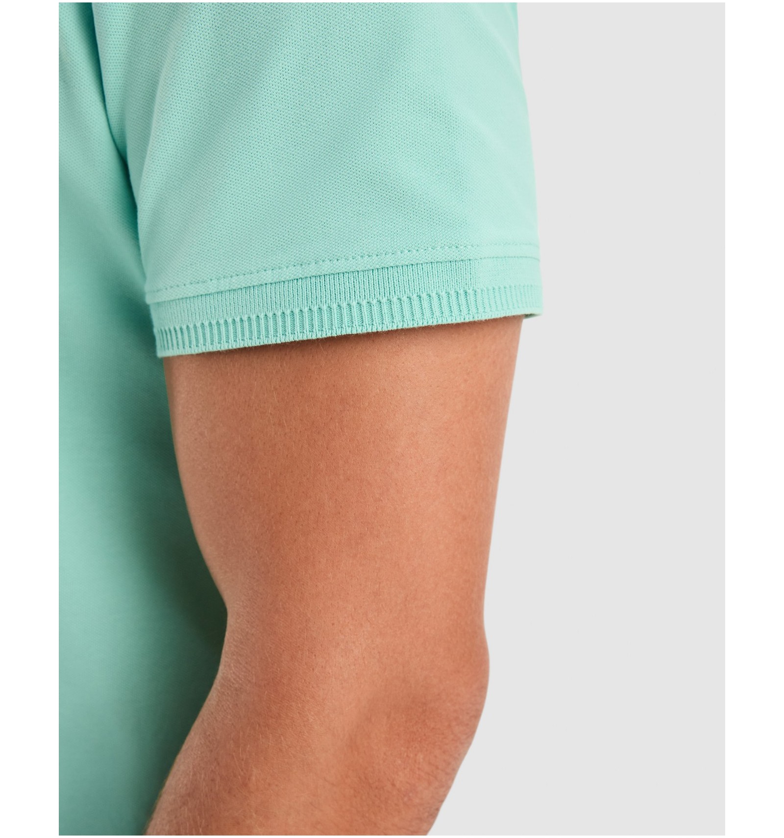 Tricou polo cu mânecă scurtă. Cusatură pique. Guler și mâneci cu nervuri 1x1 cu detalii ornamentale.
