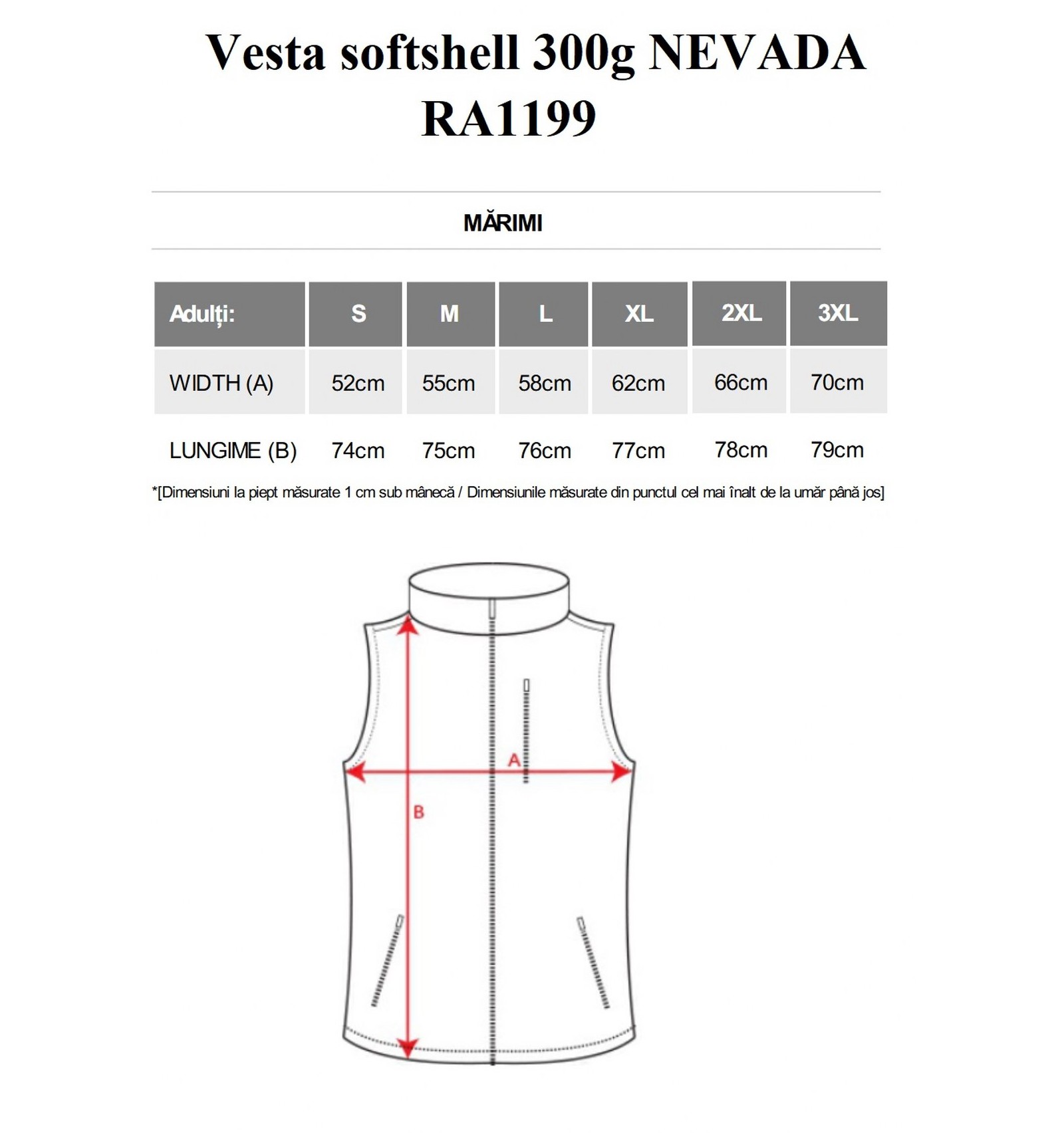 Adulți: S, M, L, XL, XXL