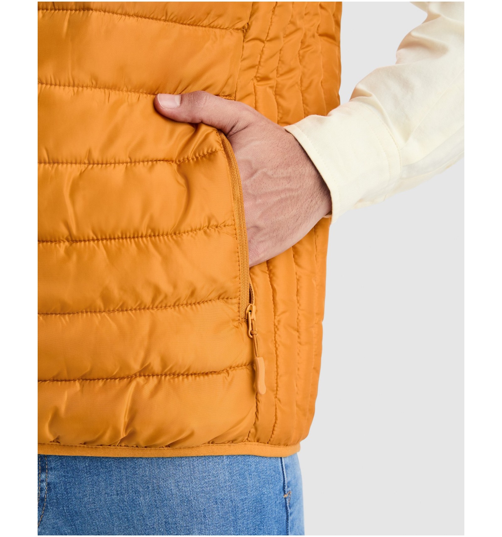 Vestă de bărbați matlasată cu umplutură tact pene.